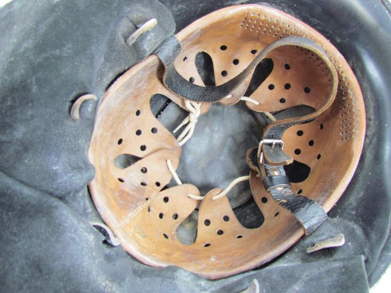 The helmet has the original leather liner with and is attacked to shell with 4 split pins.