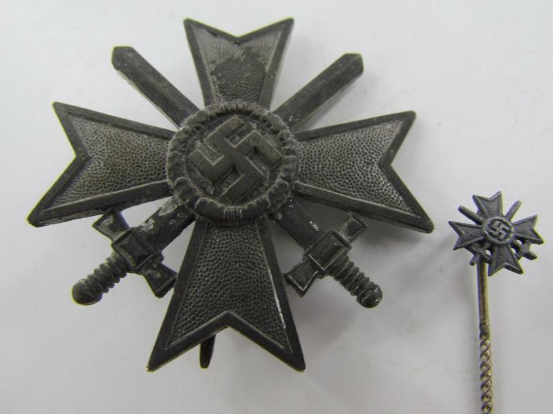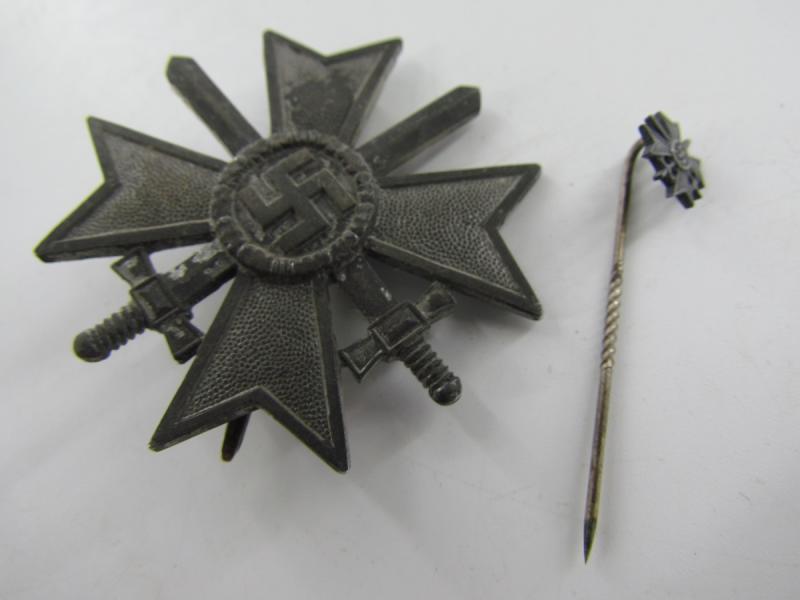 War Merit Cross 1st Class With Swords By WILHELM DEUMER "3" + Case and Miniature Version