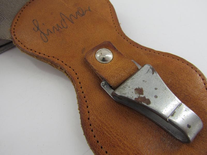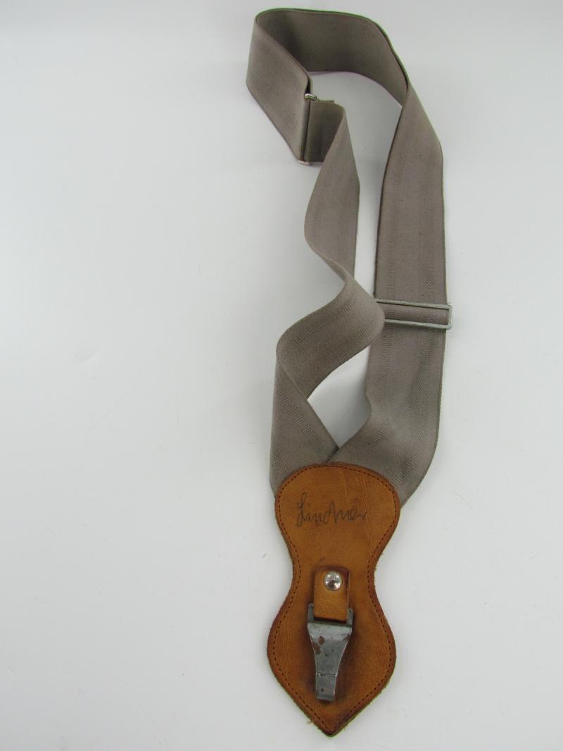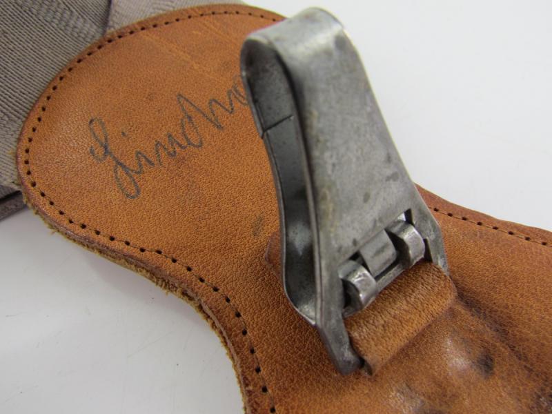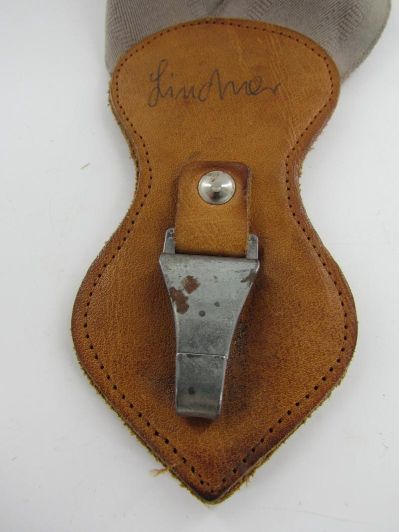 Cotton shoulder strap with a leather end tab and chrome plated snap hook. This enabled the wearer to carry a sword or dagger over the shoulder without a belt. In a very good condition