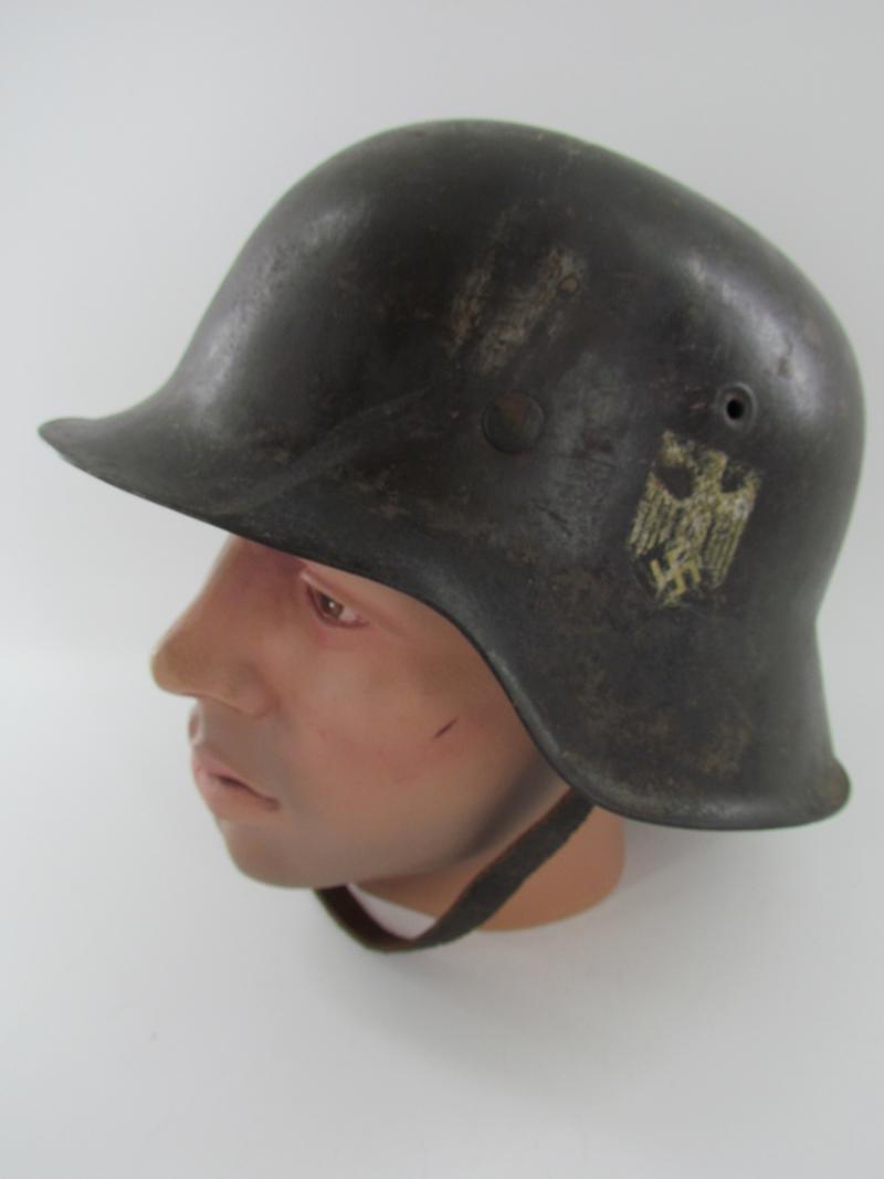 The paint shows normal wear and the left side of the helmet has a Heeres decal which is retained for about 80%