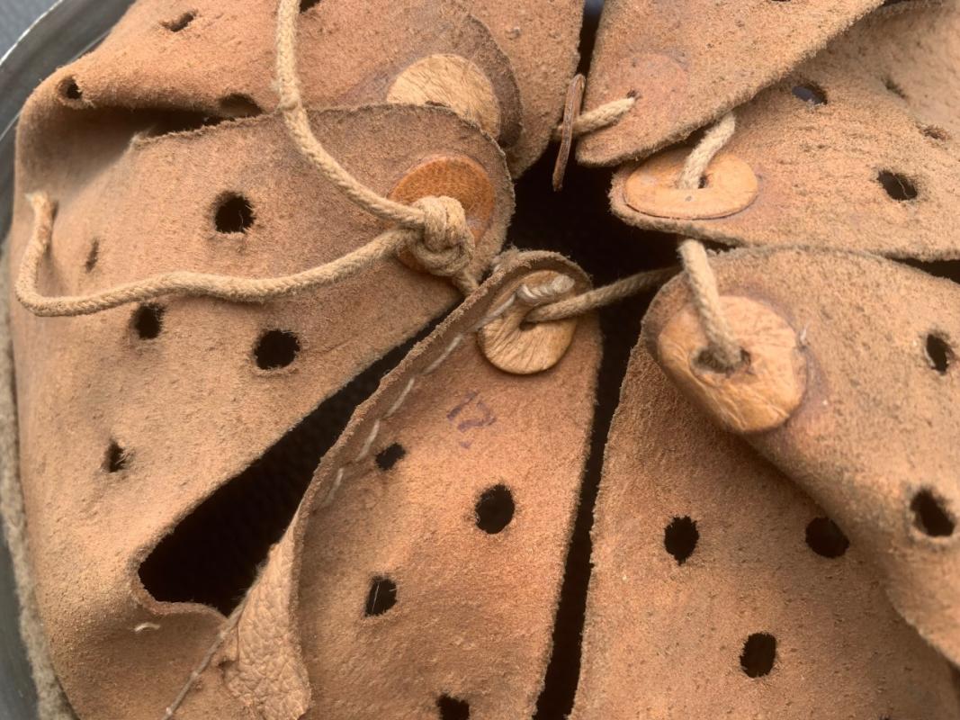 The interior of the helmet has a M31 leather liner.with original liner drawstring