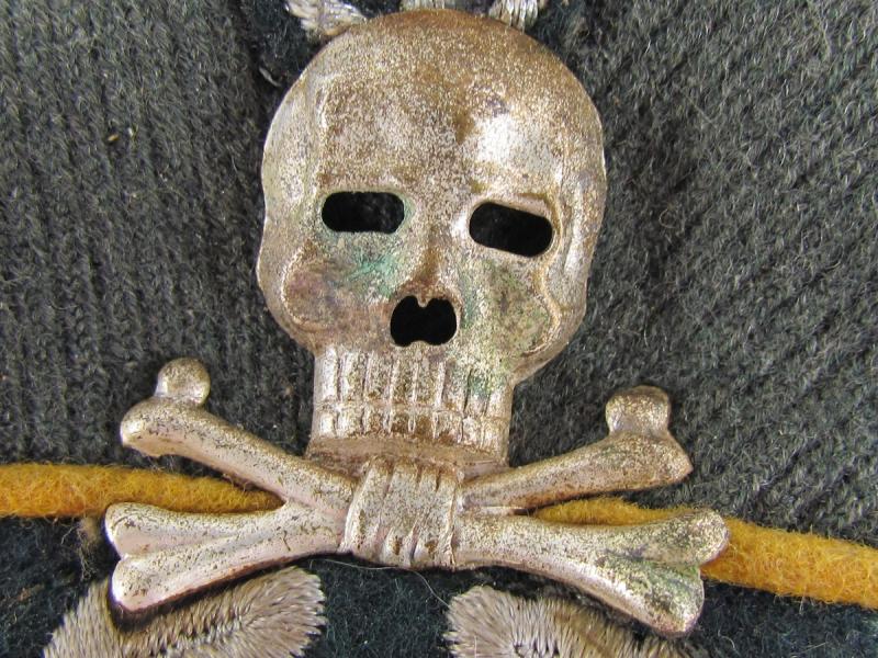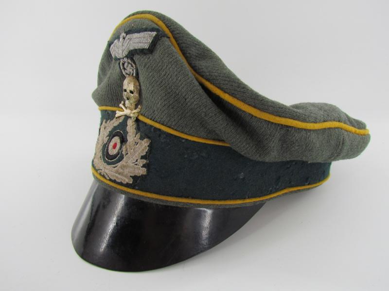 Officers Kavallerie visor with a "Braunschweig" skull. Nice "goldgelb" piping. Hand-embroidered high quality cap eagle and wreath badge