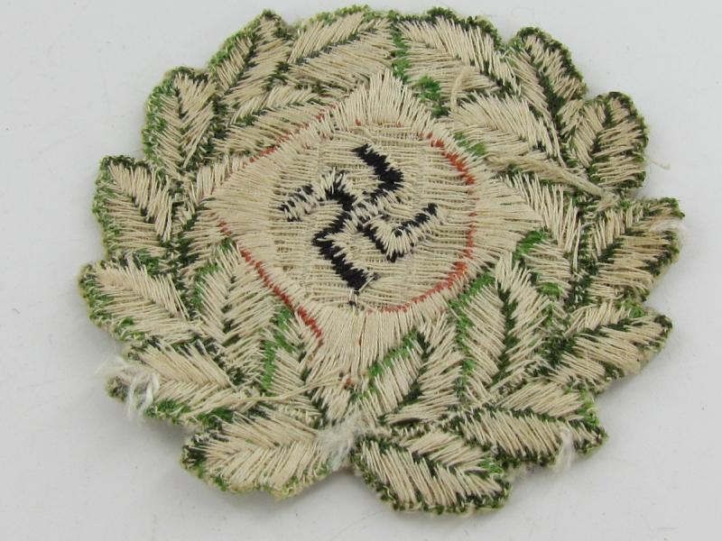 In unissued condition : Original Nazi Era German Small Embroidered Swastika on Wreath Overall width is approx. 2.25 inches.