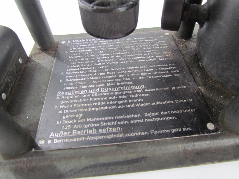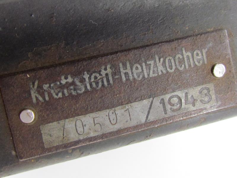 Field cooker of the Wehrmacht, design for the field. Dated and labeled "Fuel Heater 1943" With ( replaced )instruction manual The item is in a working condition Hard to find