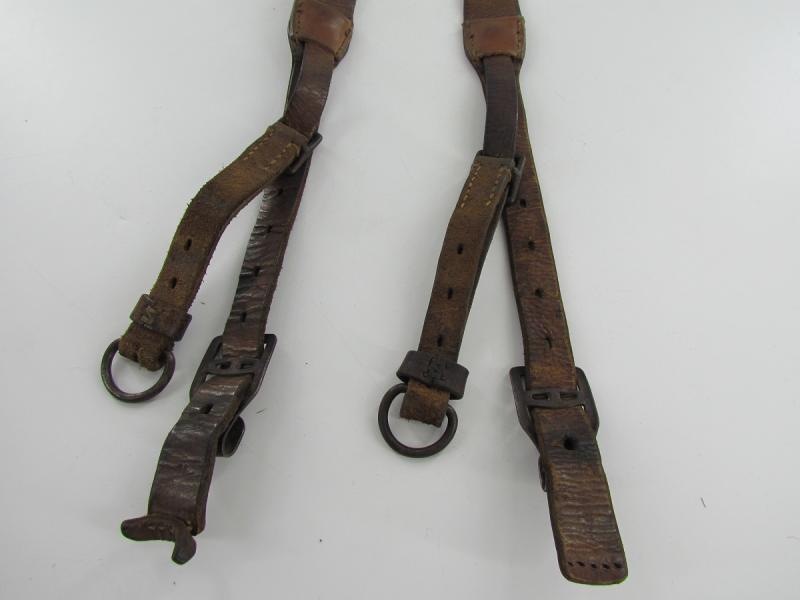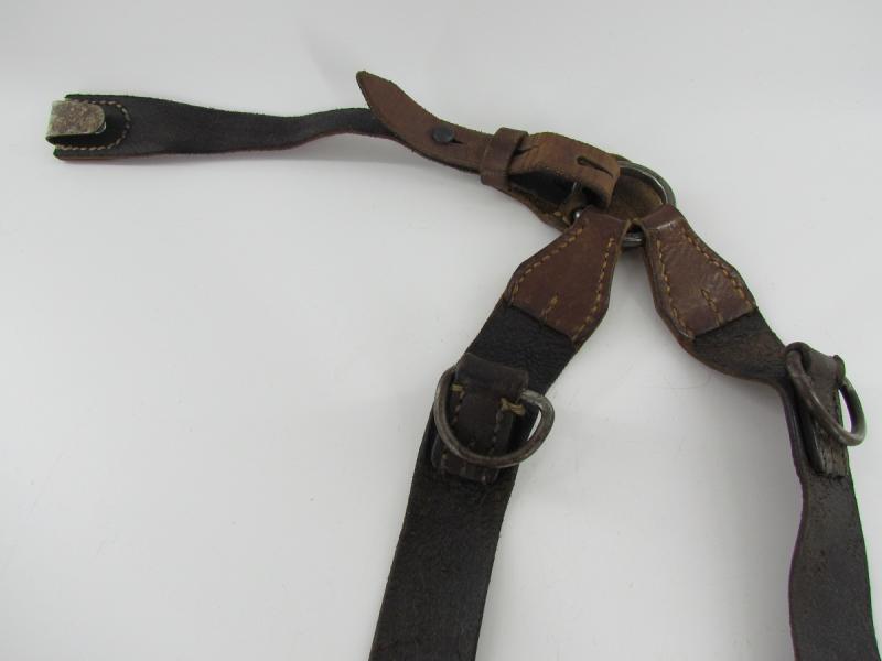 A very nice pair of combat Y riemen in used condition. No further markers or maker visible see photos for condition of the y-strap Great to finish a combat display or for an equipment collection!