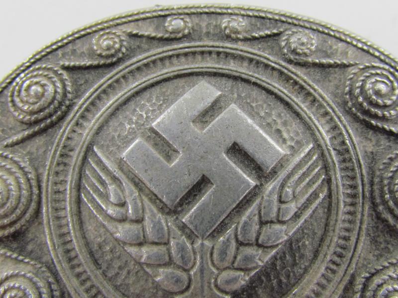In a very nice condition a German Female Commemorative Service Brooch of the RADwJ (Reichsarbeidsdienst der weiblichen Jugend) Made by Assmann Pin is not present anymore