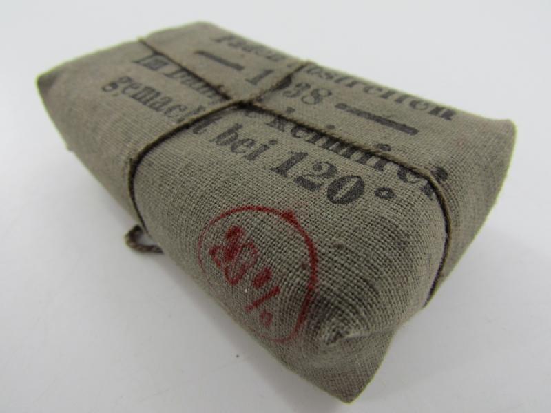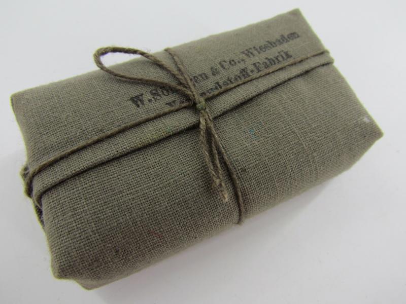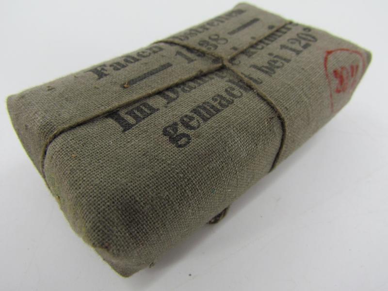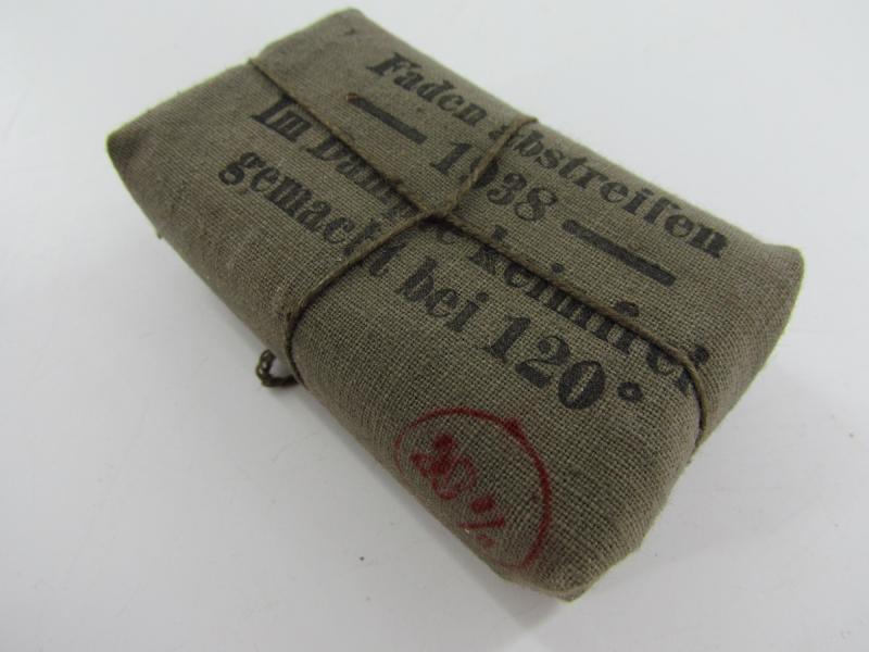 Wehrmacht First Aid Bandage Nice original cloth wrapped Wehrmacht first aid bandage. Nicely early dated “1938" In very good condition.