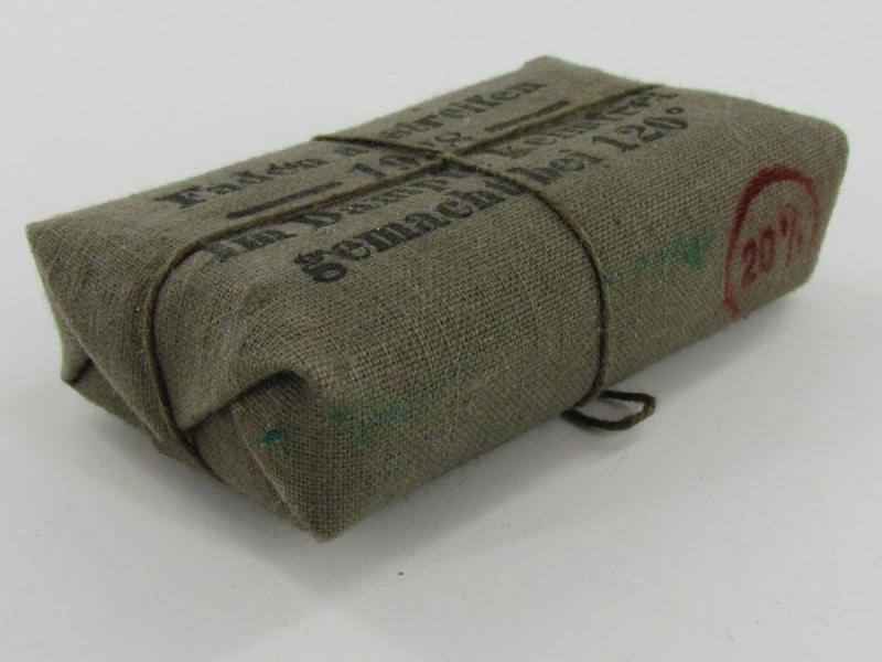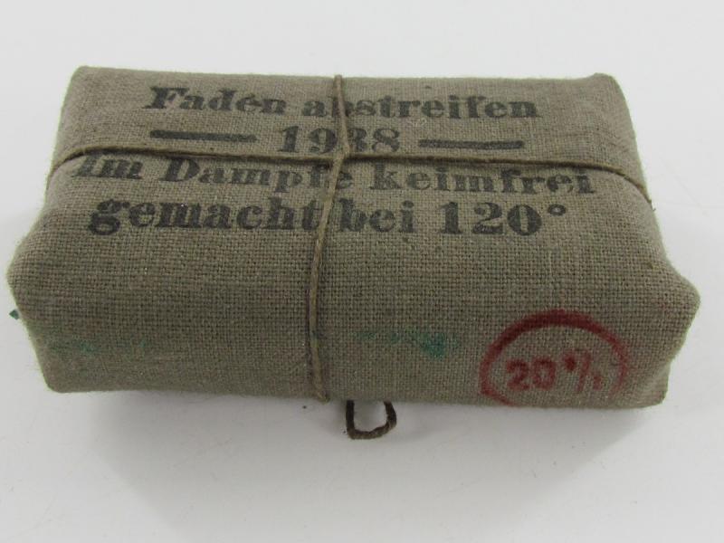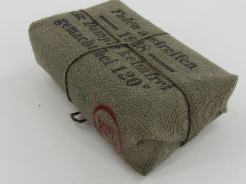 Wehrmacht First Aid Bandage Nice original cloth wrapped Wehrmacht first aid bandage. Nicely early dated “1938" In very good condition.