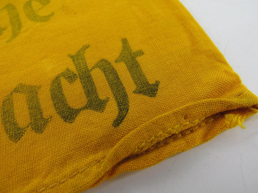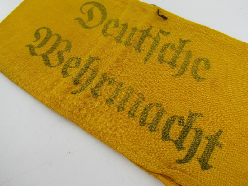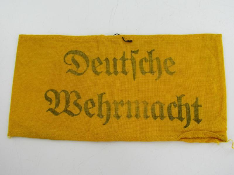 Armband "Wehrmacht". Yellow cloth Late war version with printed lettering. Used condition