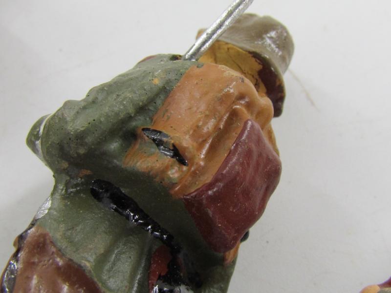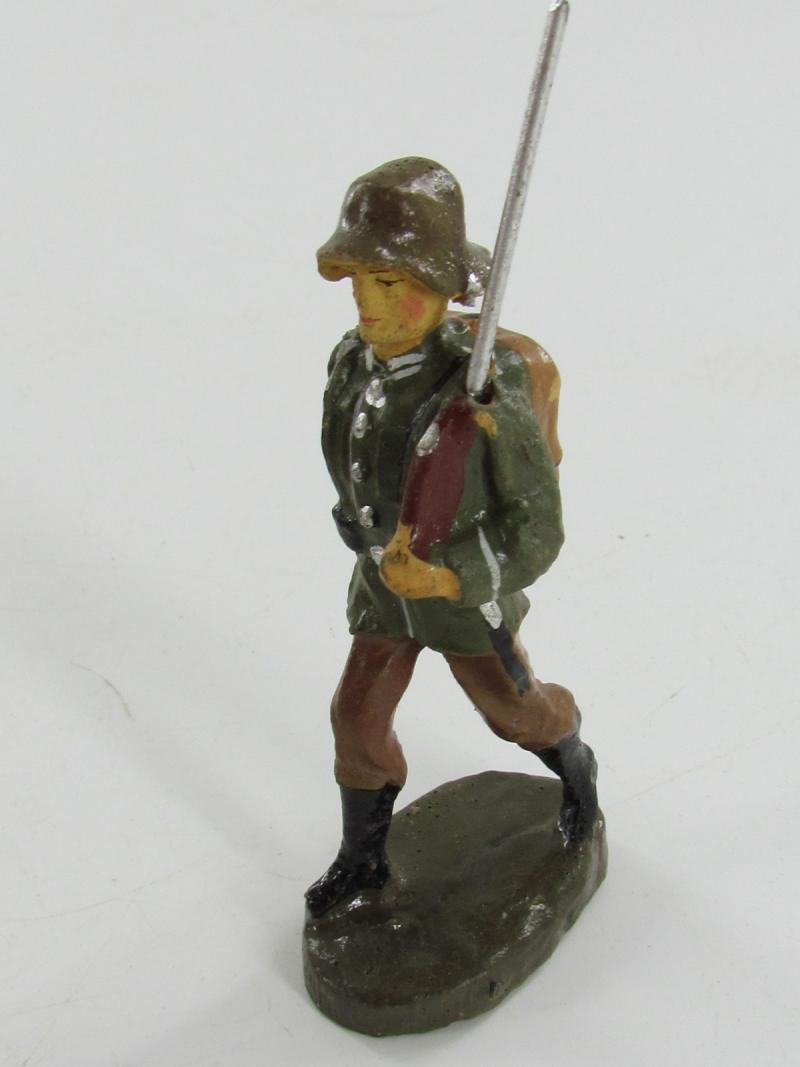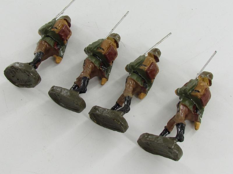4 x Elastolin/Lineol German soldiers marching with rifles at left shoulder. They all stand 3 inches high and are made of composition. See pix for condition.
