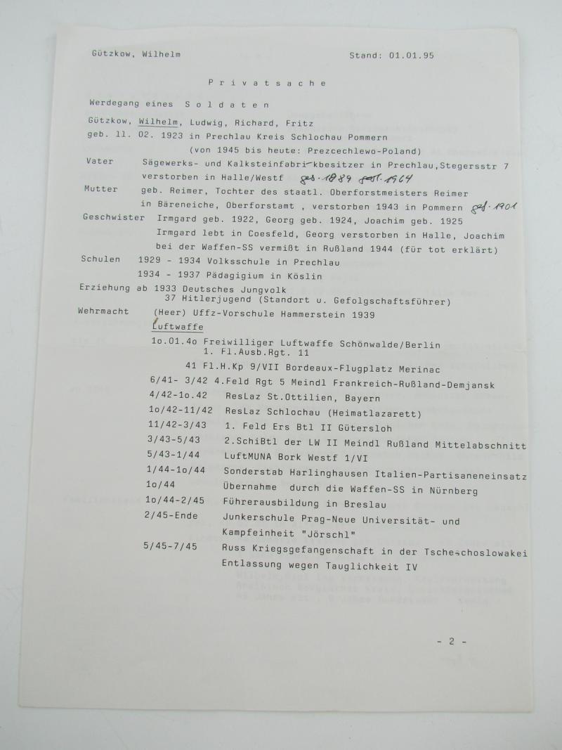 front-line soldier's report on how he was injured on 17-03-1942 in Russia The name of the soldier is Wilhelm Gütkow Also an overview of his life course