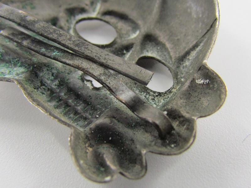 Very nice original early Danziger skull. Both prongs on the back are intact. In a very good condition