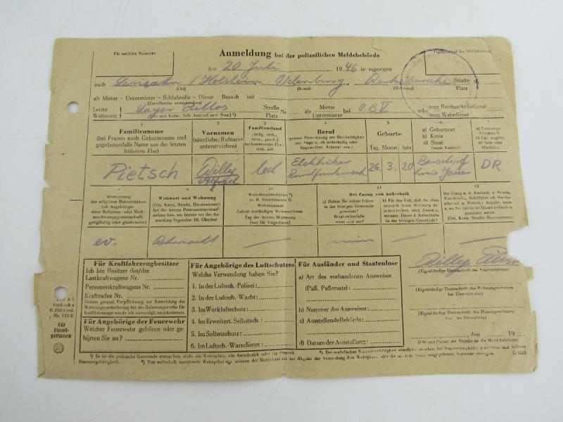 Polizei anmeldung ( Police registration )