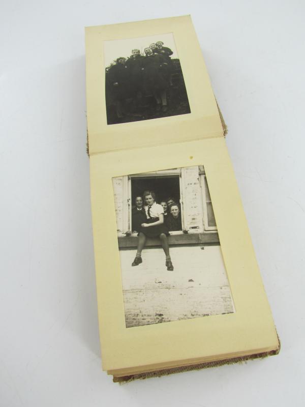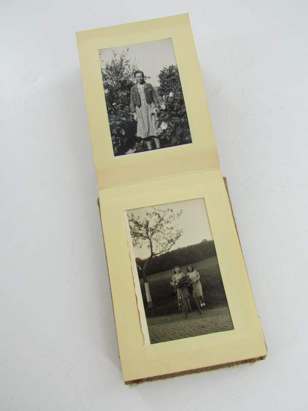 A nice small photo booklet with 43 photos of young women , probably girlfriends during the time they were in the BDM, and some pictures of their civilian life. About 11,5 x 8,5 cm