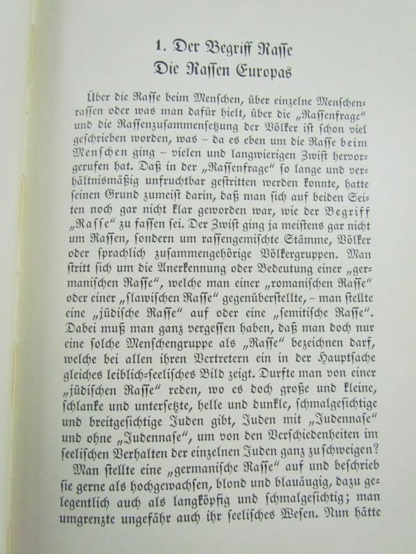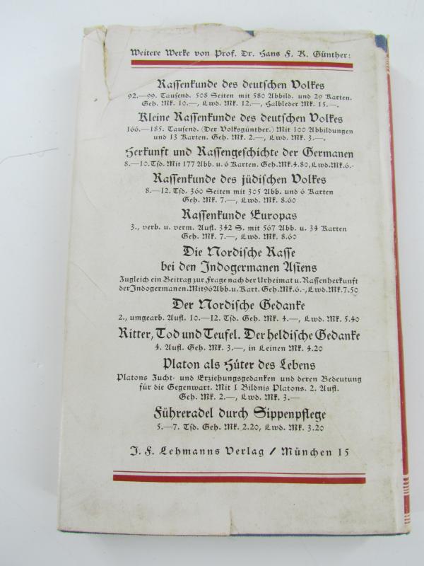 Book written by racialist and member of the German Nazi party Hans Günther [1891-1968]. The book was a major influence on Nazi racial policy. Adolf Hitler was deeply impressed by the book, to the point that it became the basis of his eugenic policy.