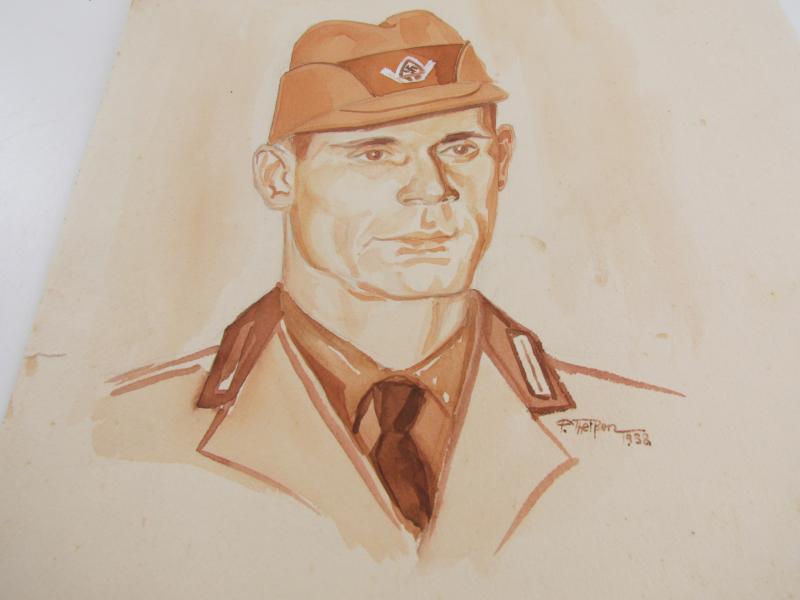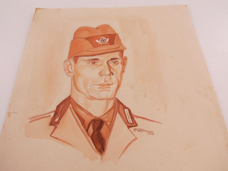 A very nice Drawing from an Reichsarbeitsdienst ( RAD )member and maker marked and also dated 1938 About 29,5 x 24 cm