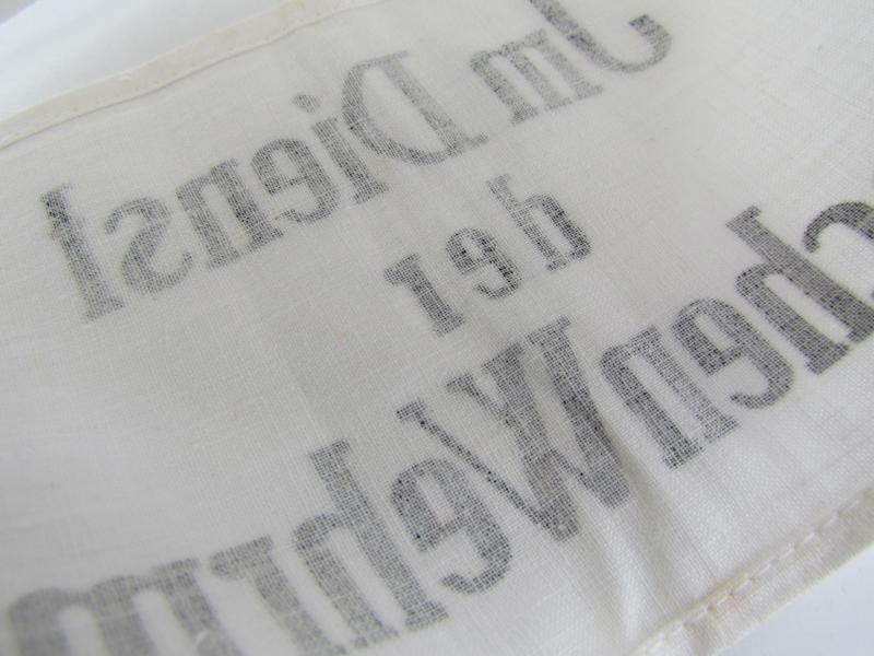 Very nice German WW2 armband “Im Dienst der Deutschen Wehrmacht Armband” Worn by non German civilians serving the armed forces. In very good condition.