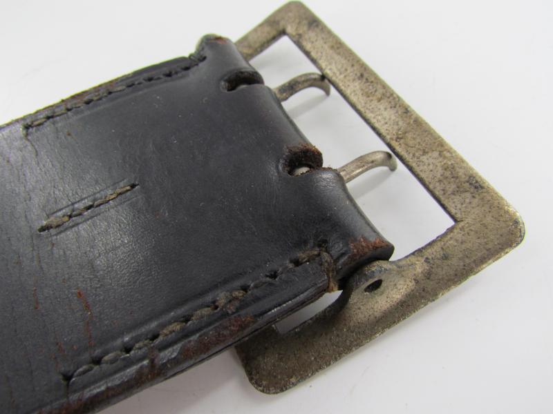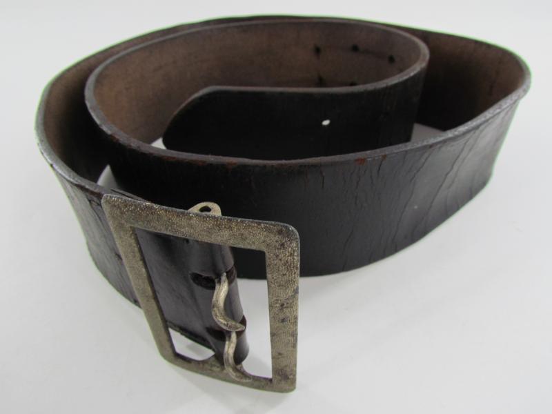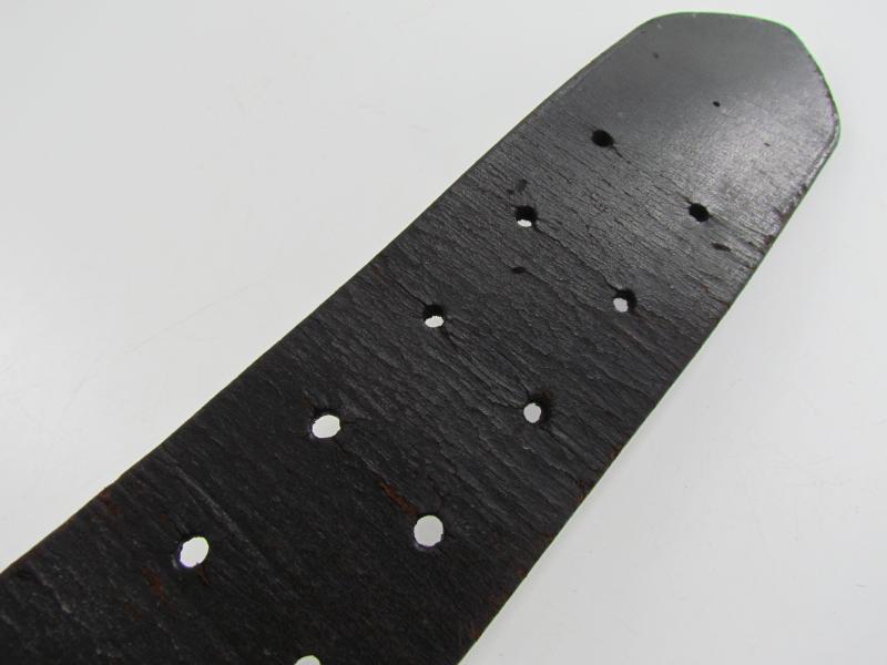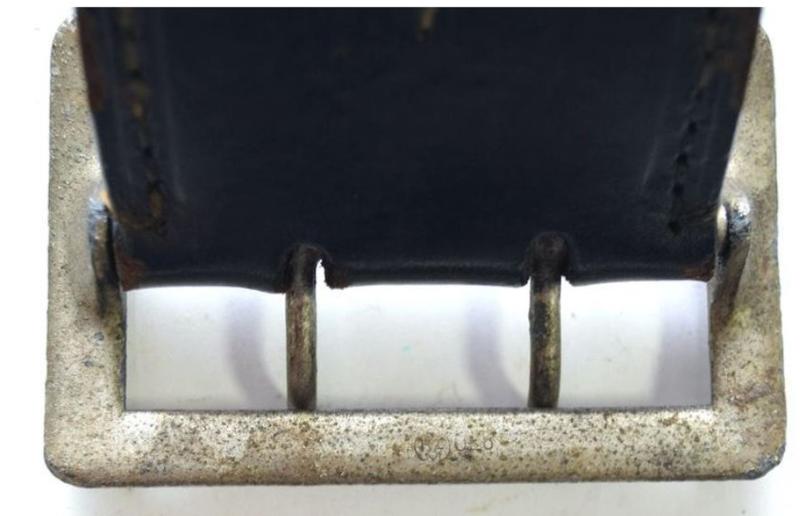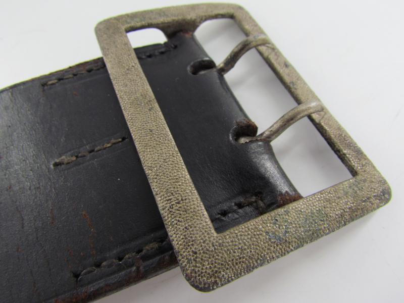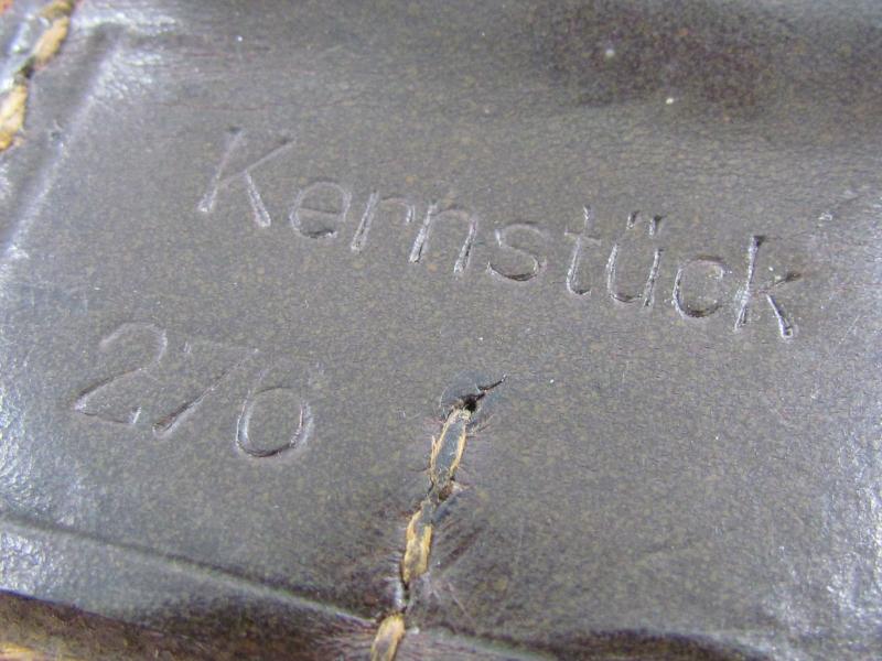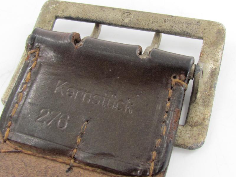 The leather is supple. The buckle is 'RZM' marked and maker marked by 'Assmann'. The leather is marked 'Kernstück 276'. The length of the belt is approx 120cm (without the buckle).