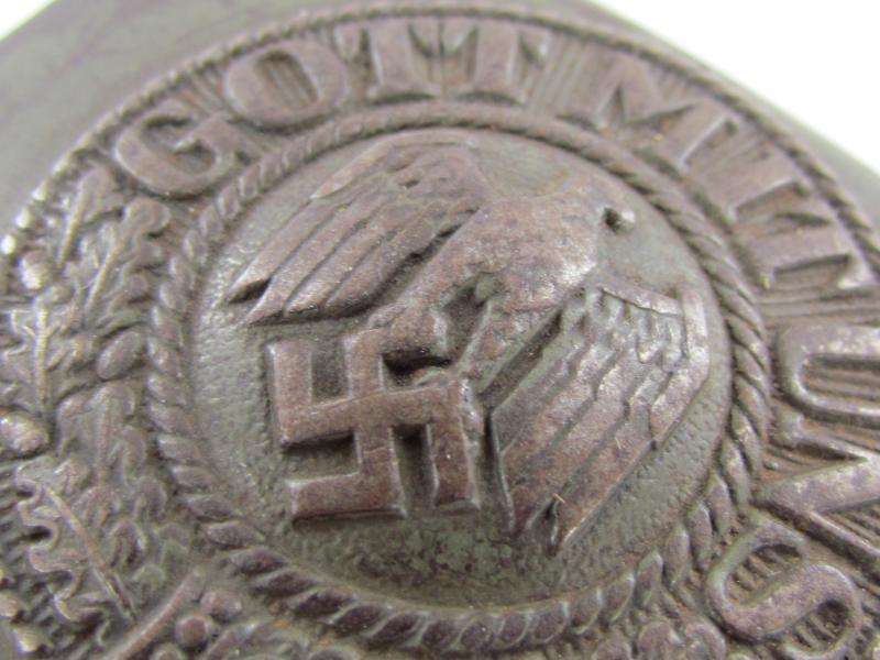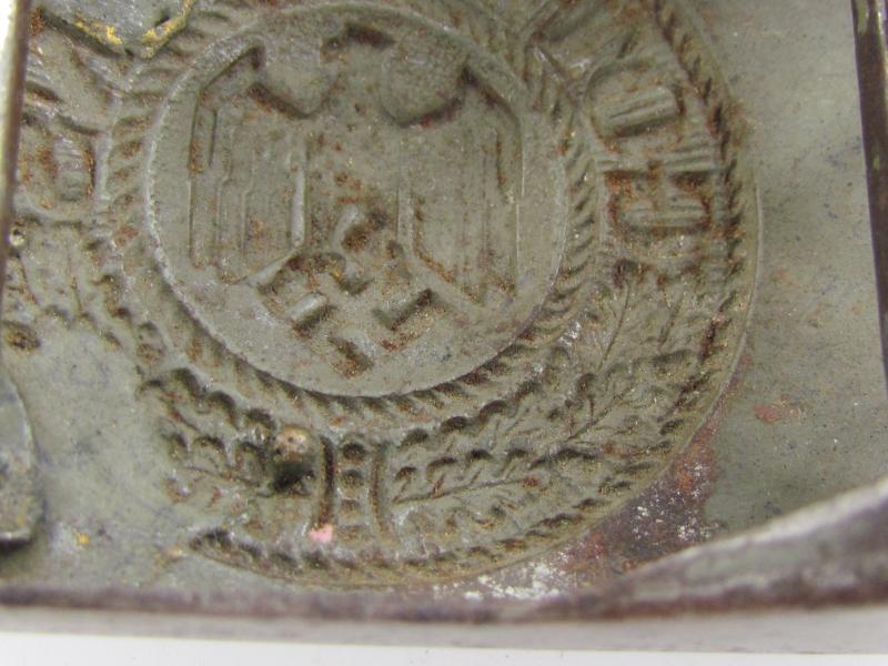 Nice used Wehrmacht steel belt buckle most of its original camo paint. Un-marked but very nice used buckle in very good condition.