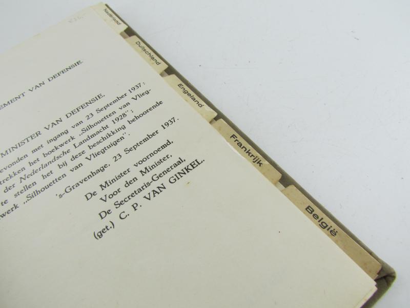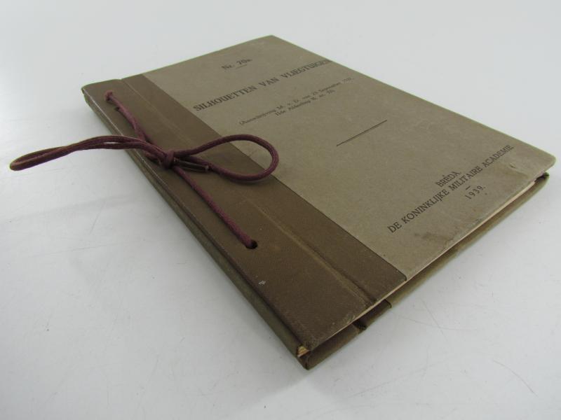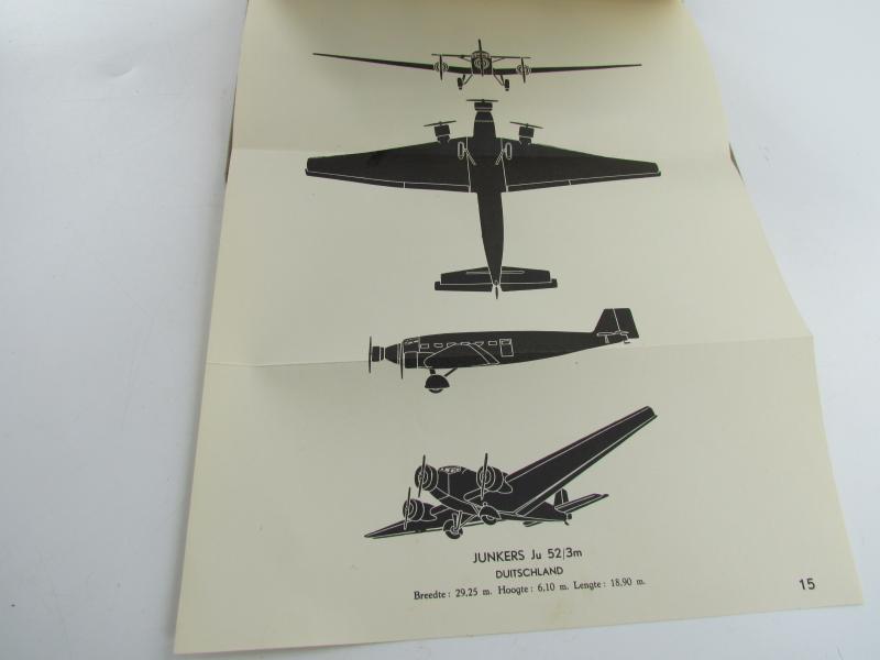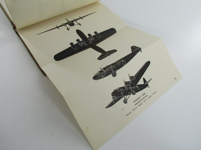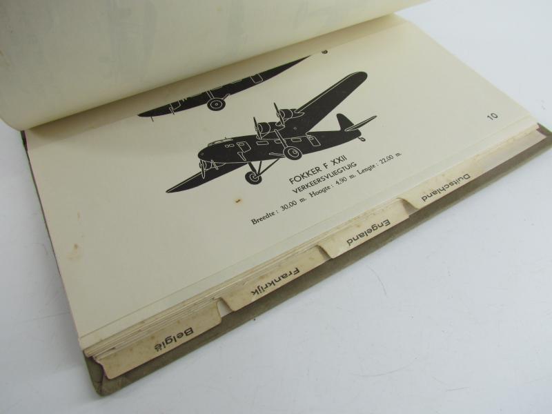 booklet from 1939 to identify aircraft. There are a number of common aircraft on display from the Netherlands, Belgium, Germany, France and England. The booklet is provided with straps with which it could be taken apart and new planes could be added.