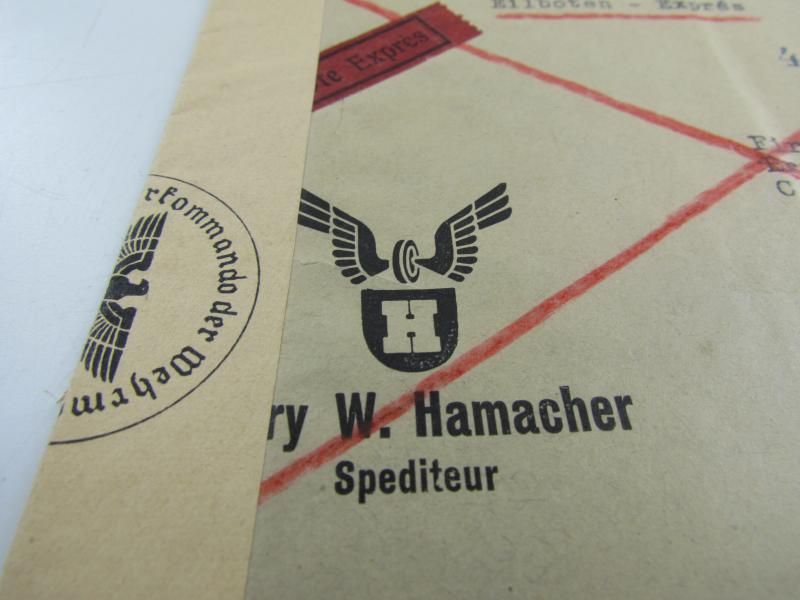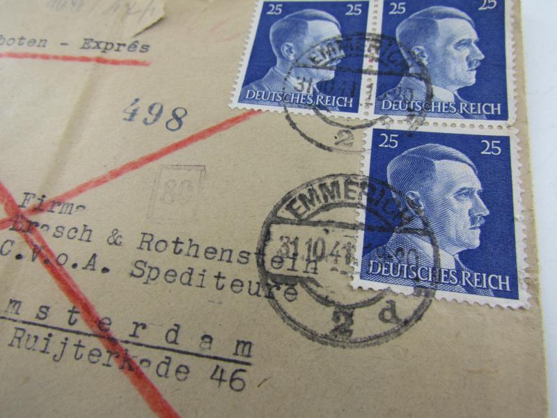 Sent on 31-10-1941 by W.Hamacher in Emmerich (a forwarding agent that still exists today) by express
