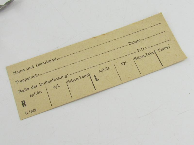 A very nice Maskenbrille in almost mint condition. These were used to store glasses that were supposed to be worn under the gasmask, and were standard for everyone who needed them! Would finish up any display!