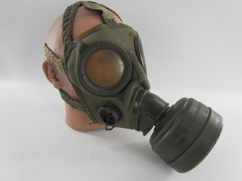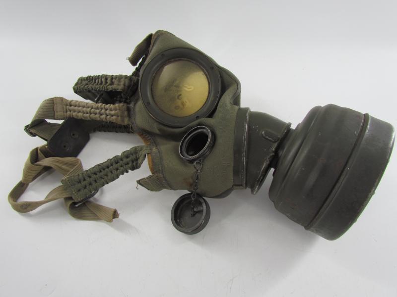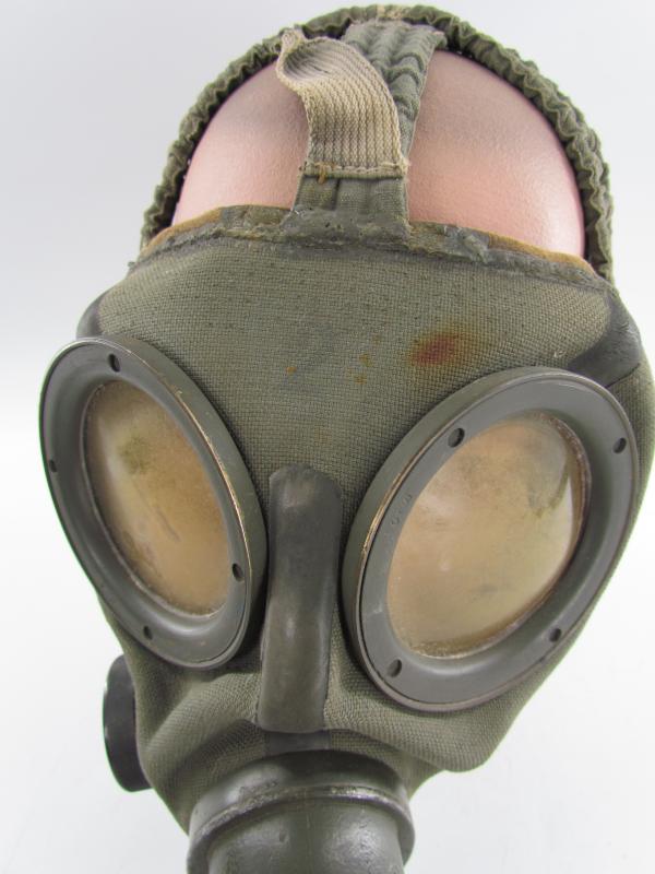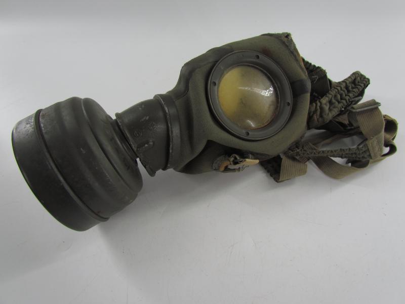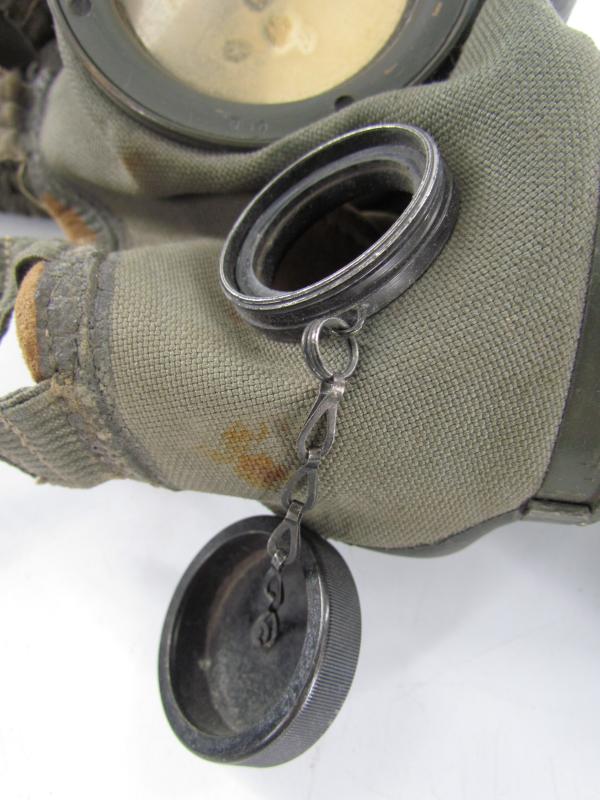 A rare M30 gasmask with special microphone connection in the mask for communication use and was mostly used by Kriegsmarine or Küstenartillerie