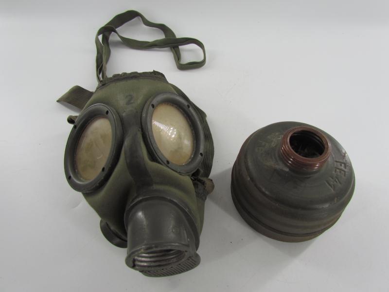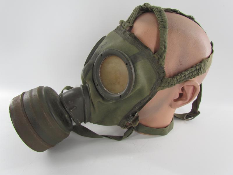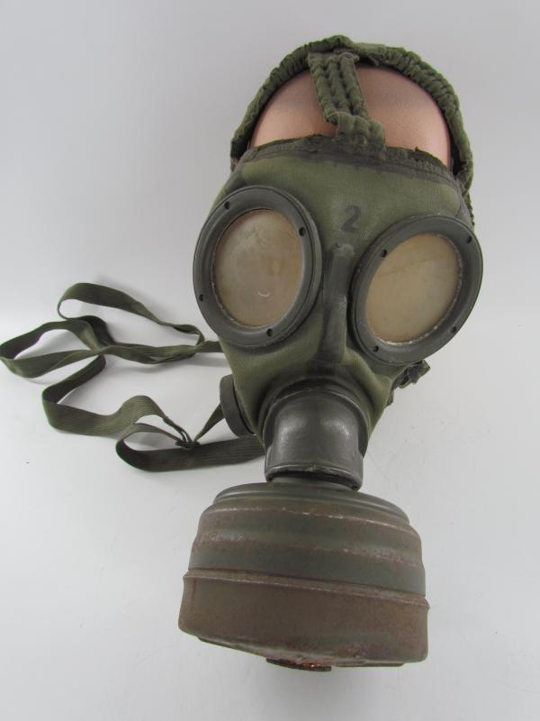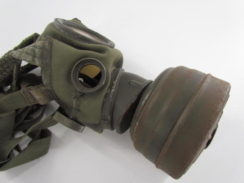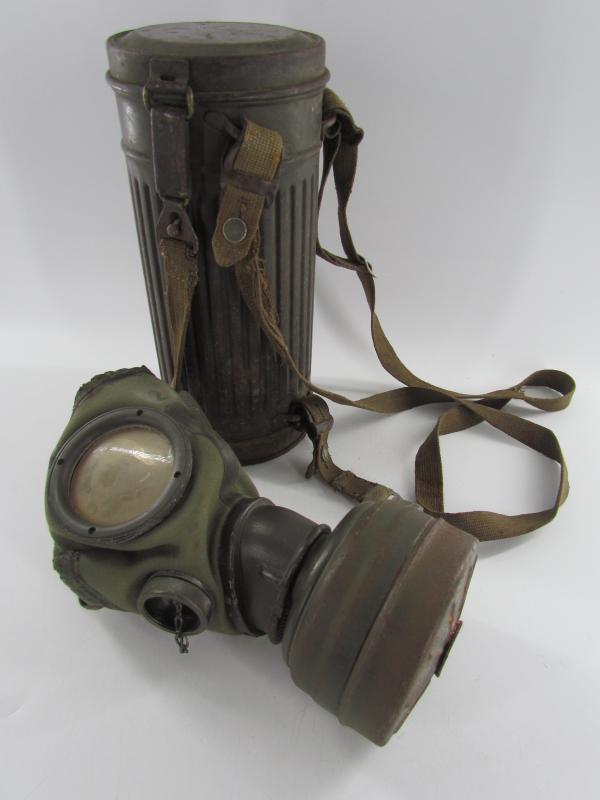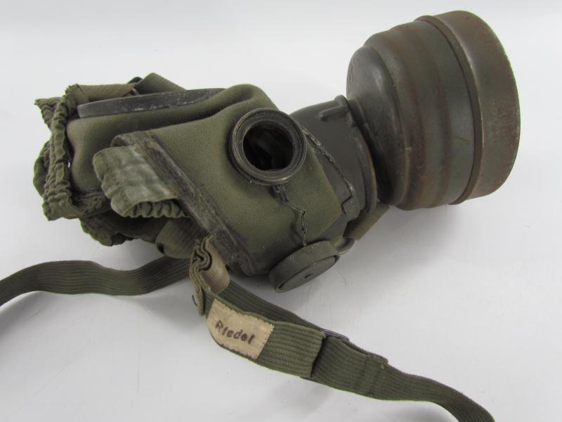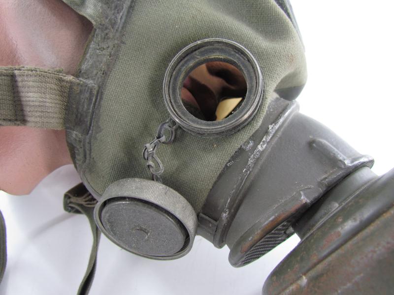 A rare M30 gasmask with special microphone connection in the mask for communication use and was mostly used by Kriegsmarine or Küstenartillerie