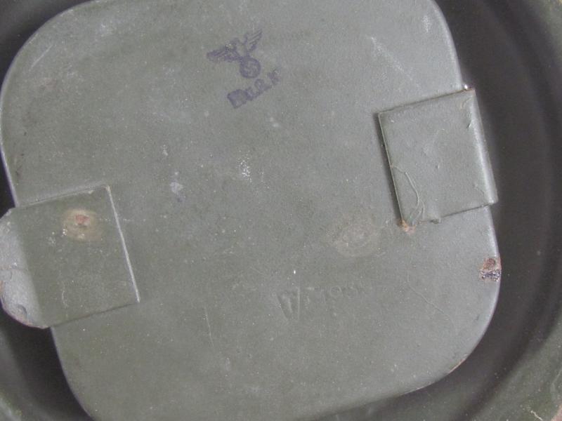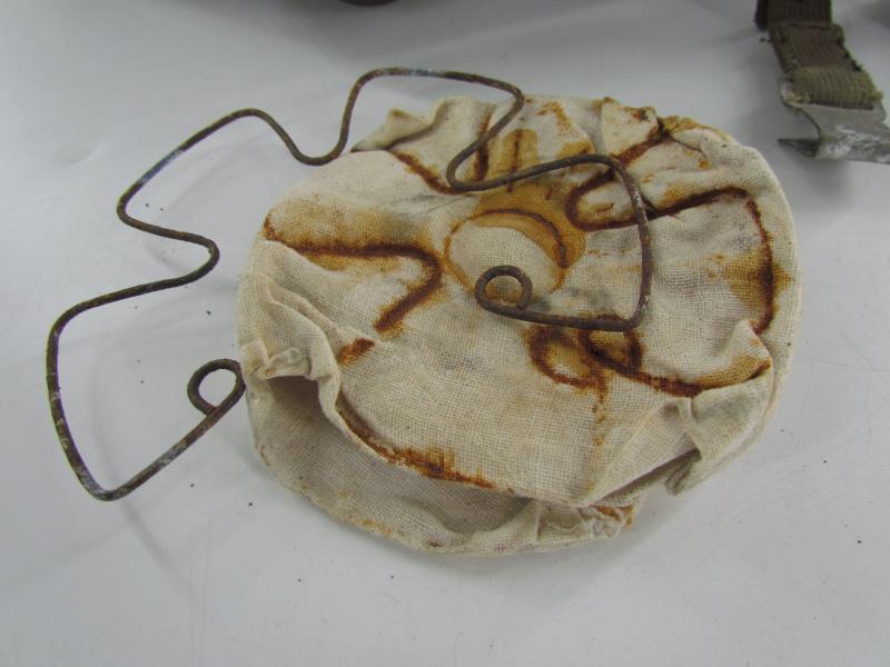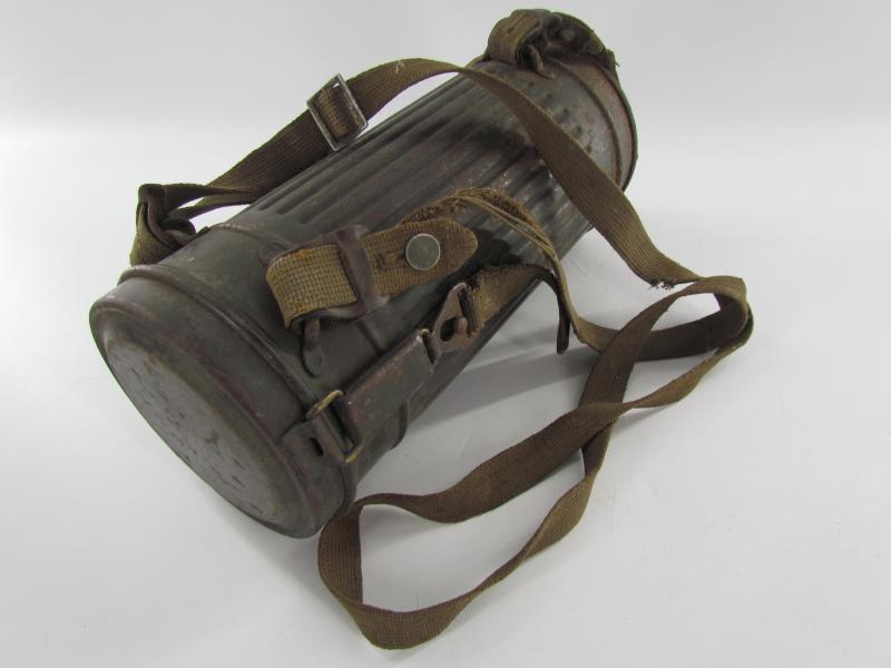 The gasmask has several markings on it and also the Kriegsmarine M and all straps are present