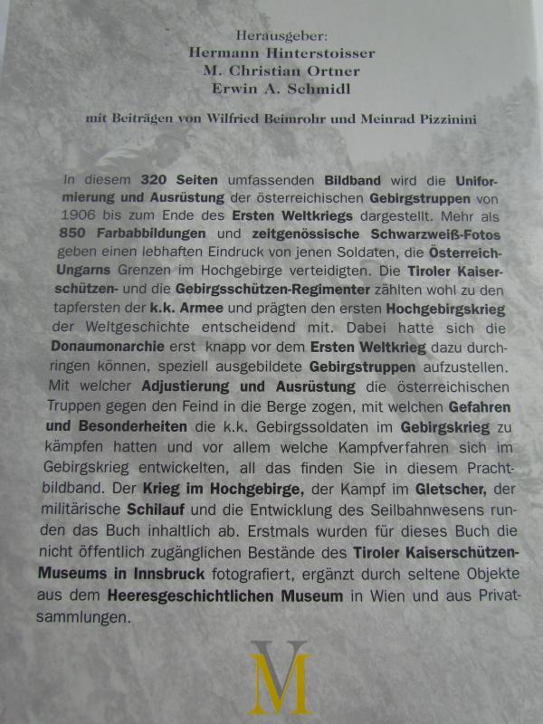 the special adjustment and the insignia of the kk mountain troops is devoted to about 1000 photos and illustrations in this illustrated book