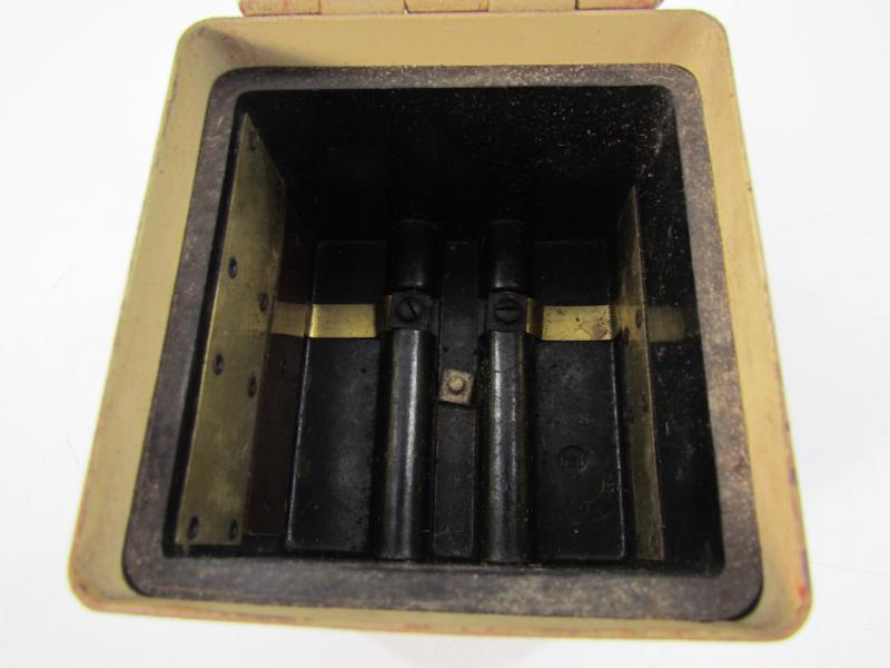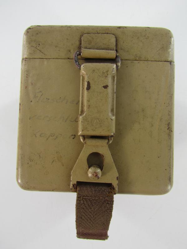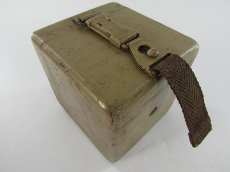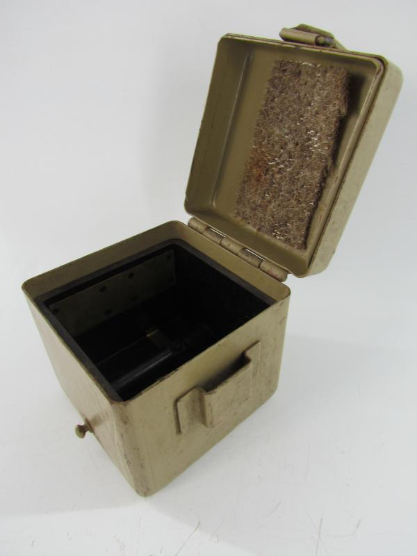 Wehrmacht MG34/42 Optical Sight Battery Box (MG Zielfernrohr Batterie Kasten). Late war tan painted example, complete with inner frame Nice original example in good condition!