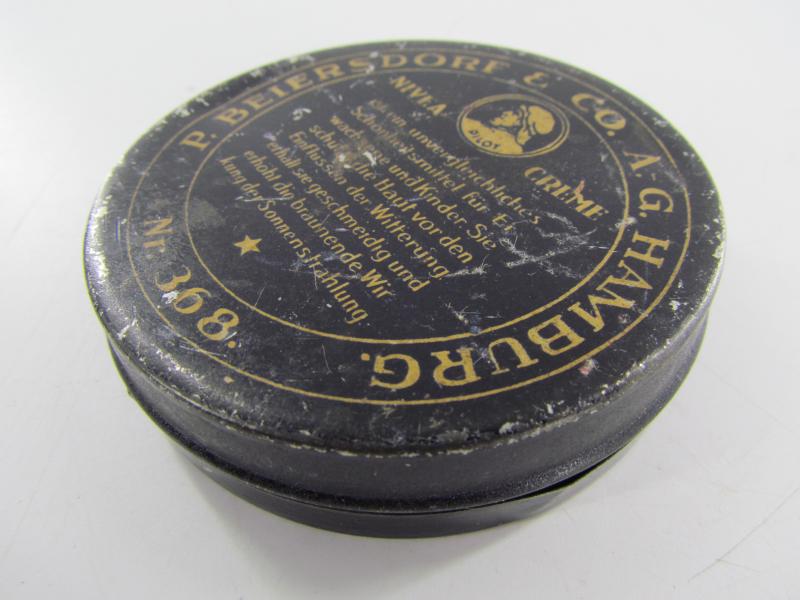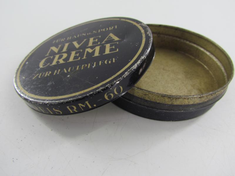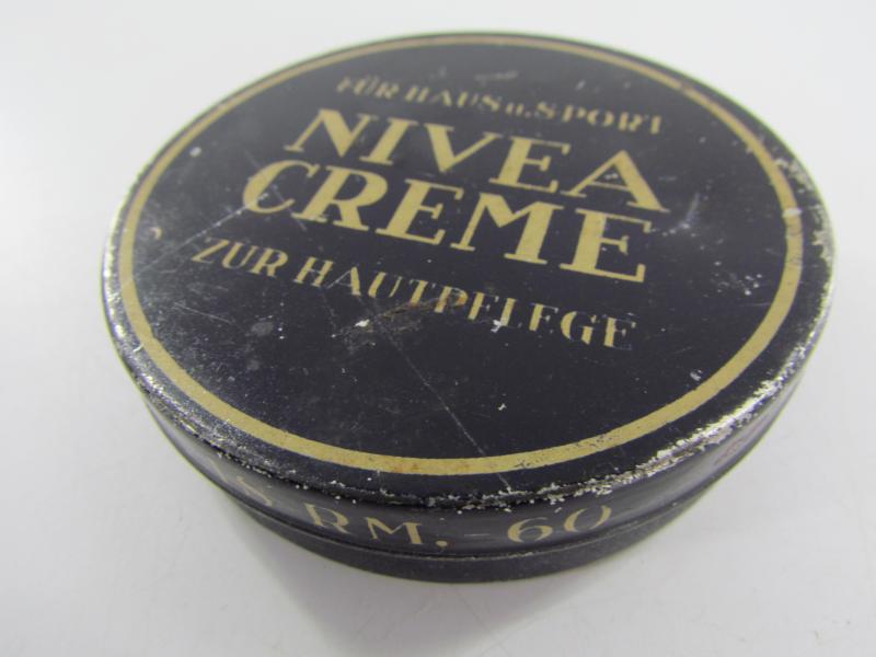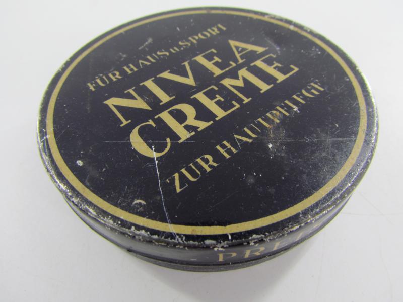 Very nice empty metal can Nivea skin "creme" cream You can find the metal can in the new personel item book "Ruhe Tag" from "Schiffer" in very good condition.
