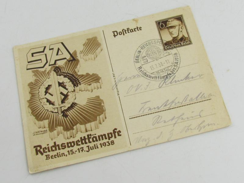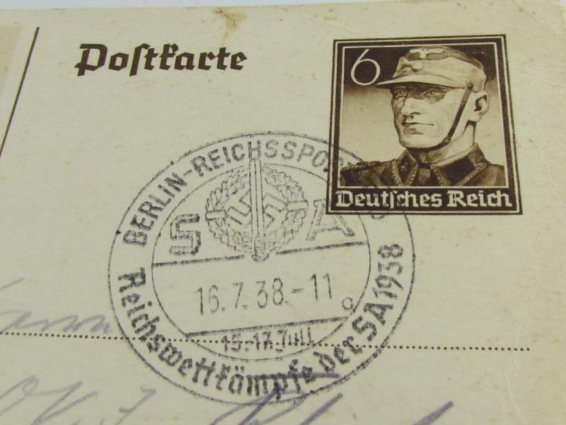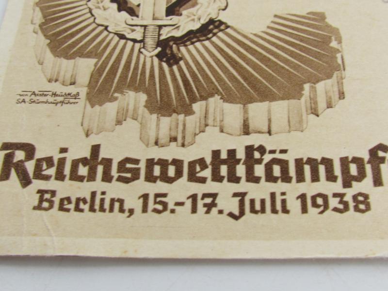 Third Reich SA postcard - Reichswettkämpfe, Berlin, July 15-17, 1938 - SA competitions of the Reich. Size 15 x 10,5 cm. in good condition