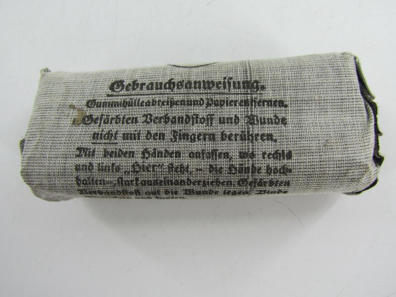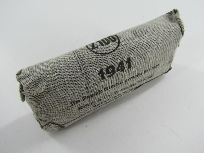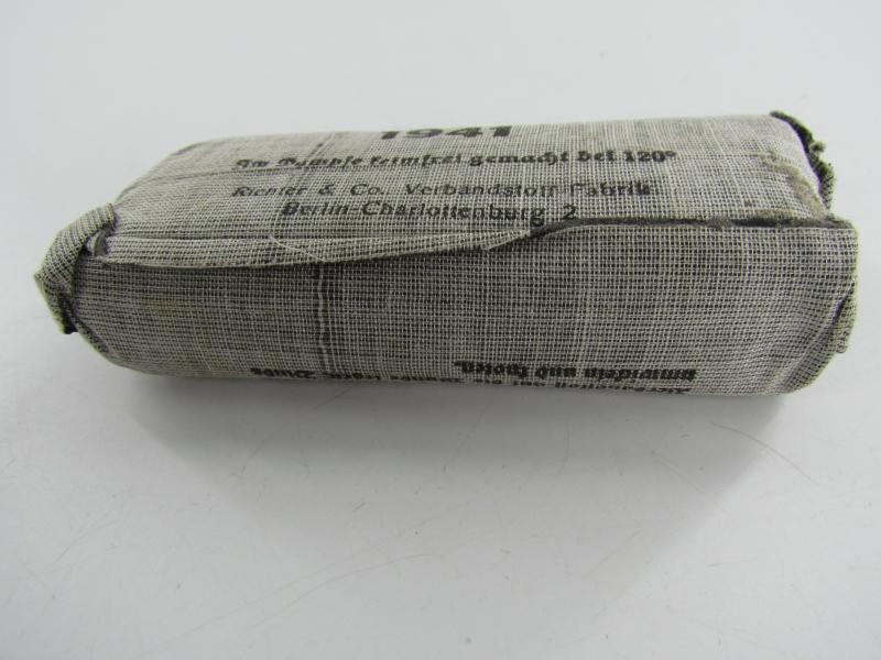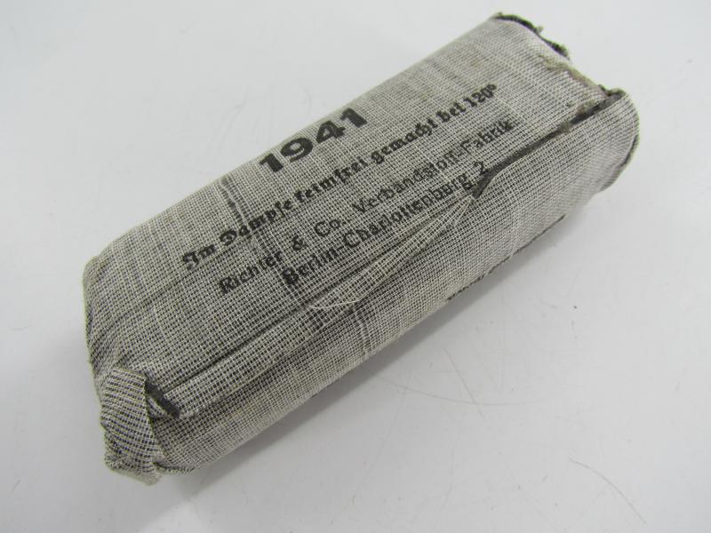 Dated “1941” nice Wehrmacht First Aid wound bandage. “Verbandpäckchen” Which was carried in every Wehrmacht combat tunic in the small bandage pocket inside.
