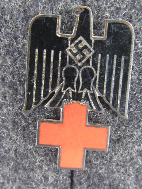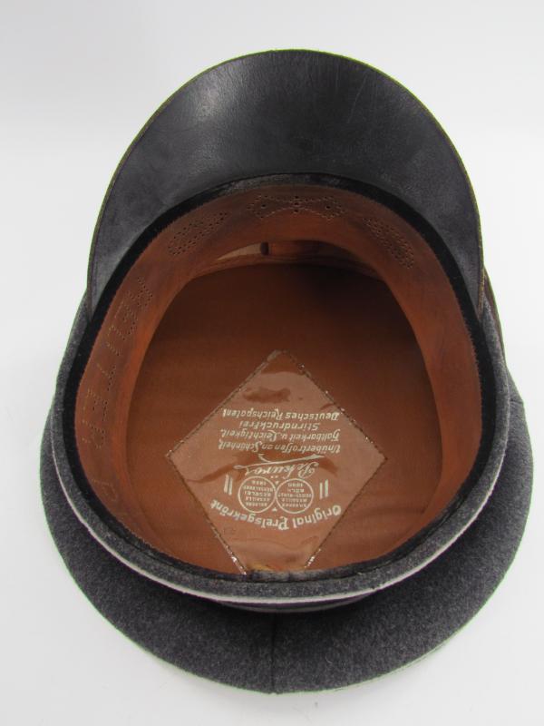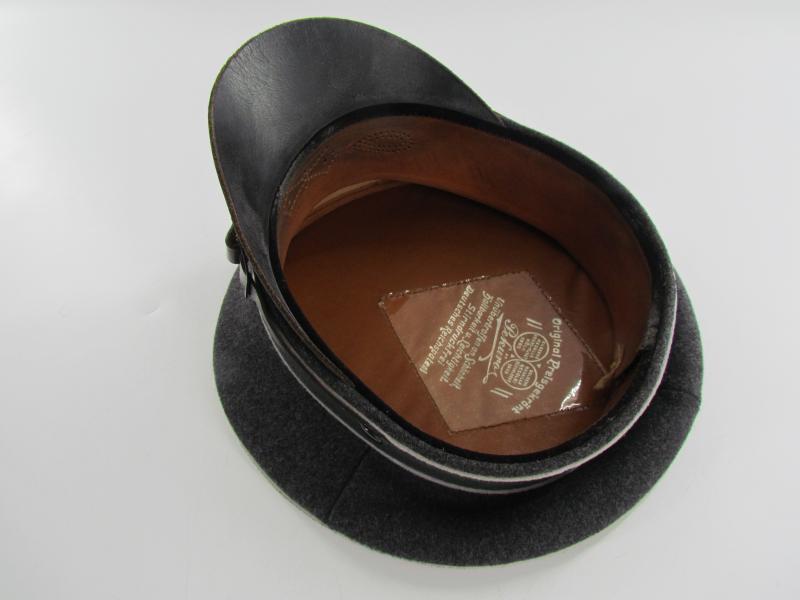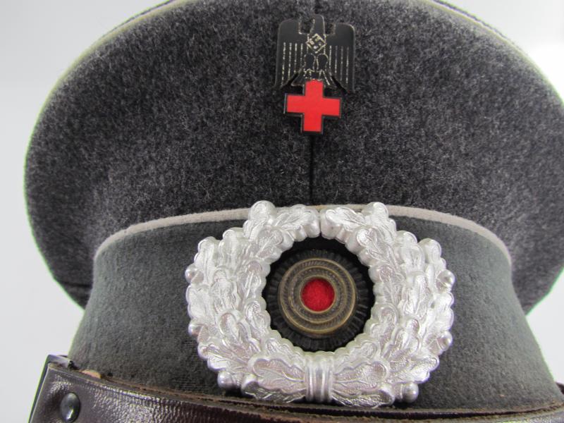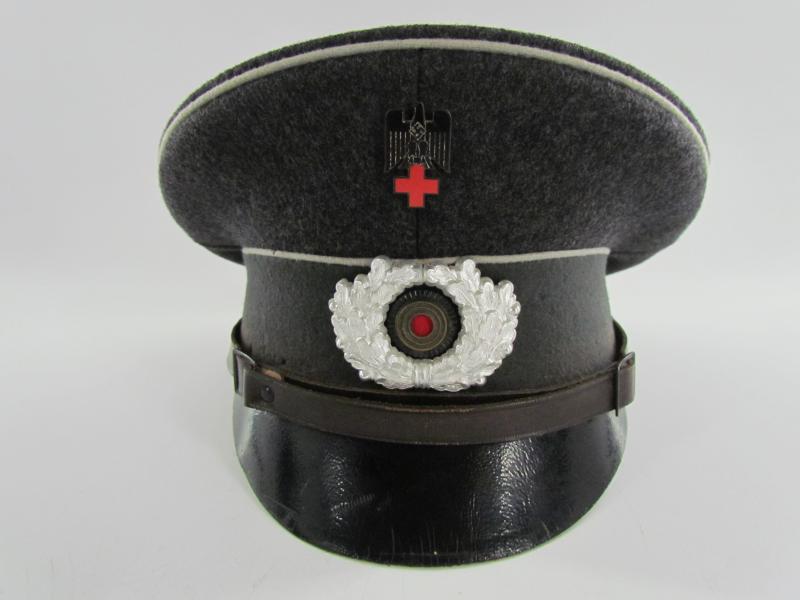 The grey woolen visor cap is piped in the light-grey 'Truppenfarbe' (branch-colour) for DRK personnel