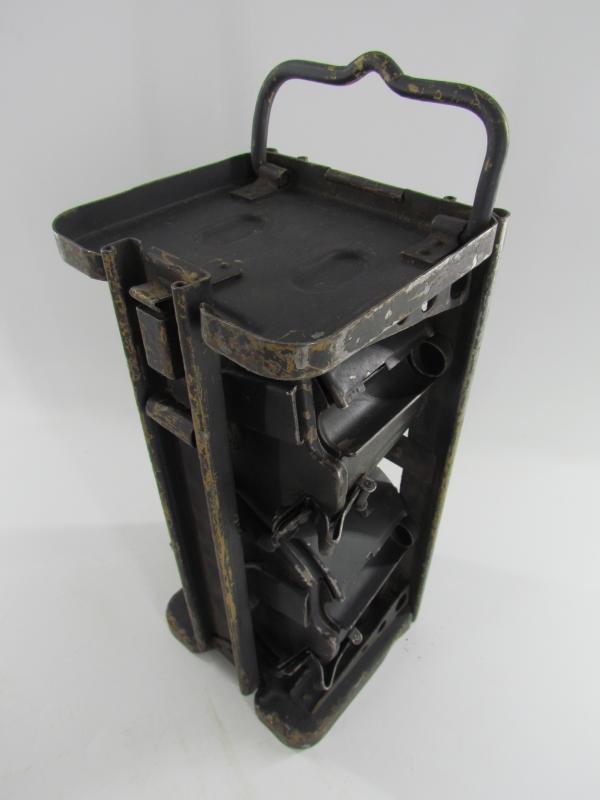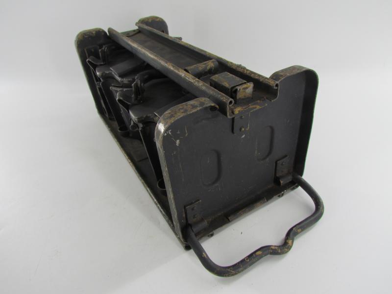 Nice set of MG34/42 drum magazines in carrier. Both drums where originally ordnance tan and have been period hand overpainted in grey.