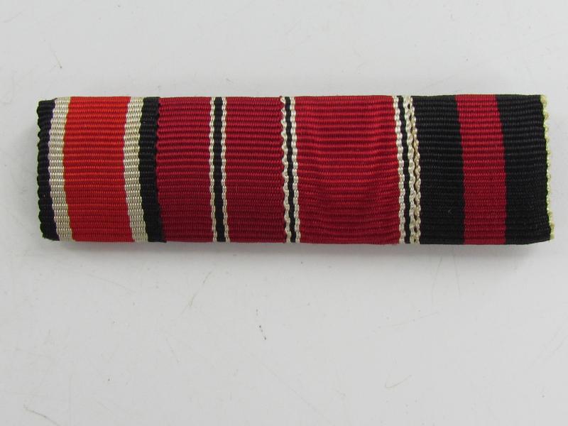 Wehrmacht 4-Piece Ribbon-Bar (Bandspange). The ribbon bar is showing ribbons for the Iron Cross 2nd Class,the Ostmedal,the 1 October 1938 Medal,and the Austrian Occupation Medal in a very good condition