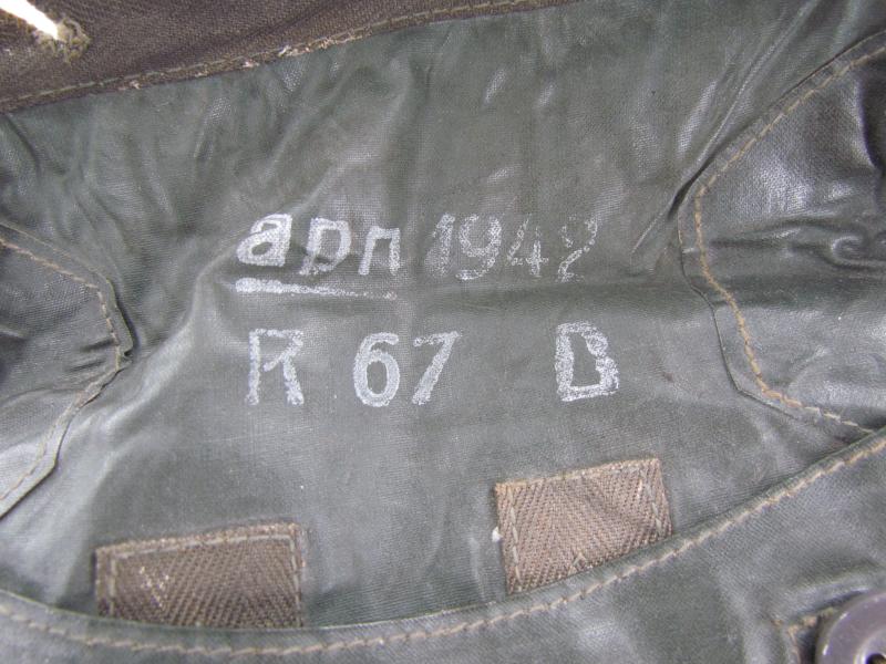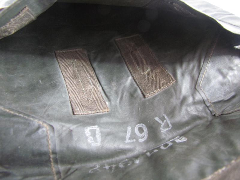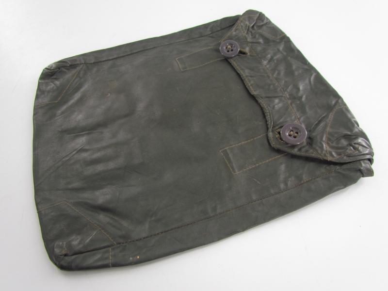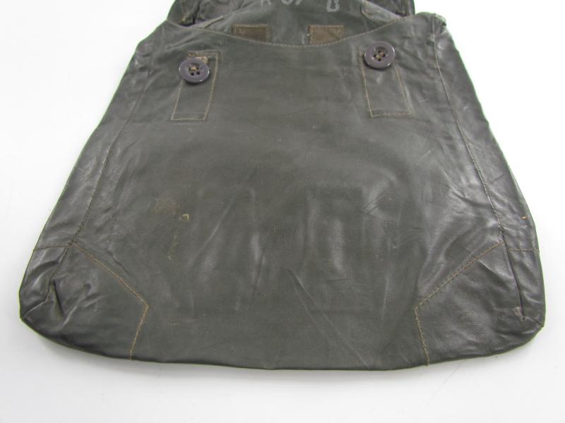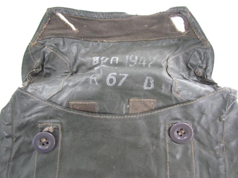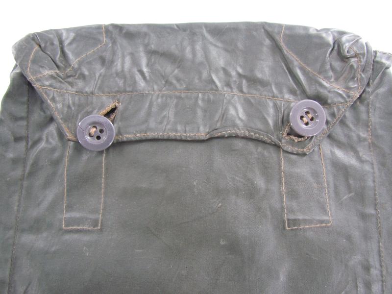 The pouch shows overall normal signs of wear. There are no damages and the material is supple. Both buttons are in working order. Marked on the inside.