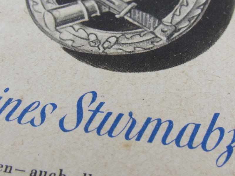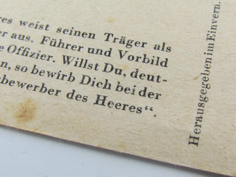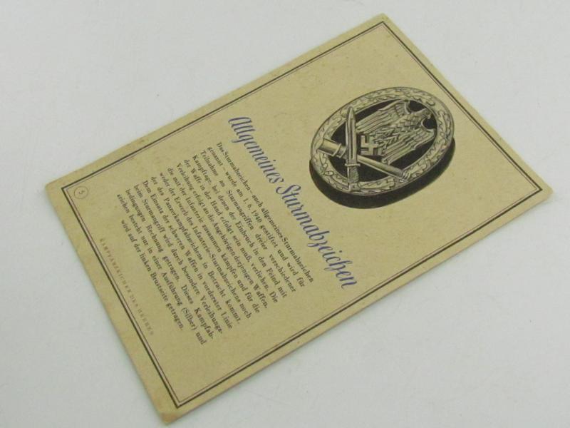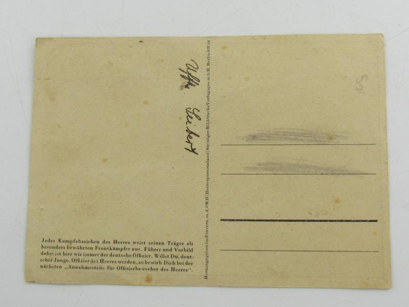 hard to encouter Allgemeines Sturmabzeichen postcard in excellent condition. The card shows overall minor signs of wear. Its number 5 of the 'Kampfabzeichen des Heeres' series. Hard to find