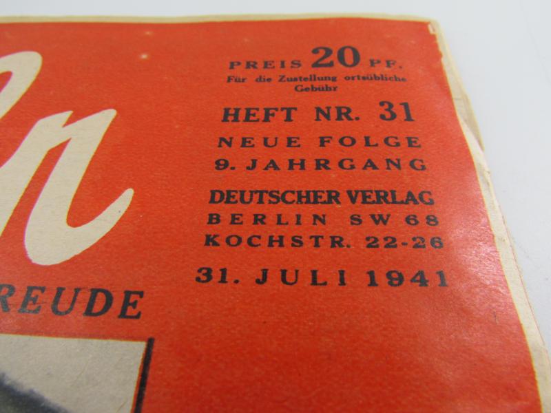 a nice period issue of the magazine Koralle. with interesting period photos and articles inside. Dated 31 July 1941 in used but good condition