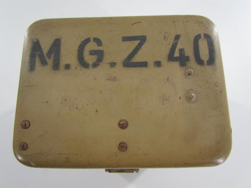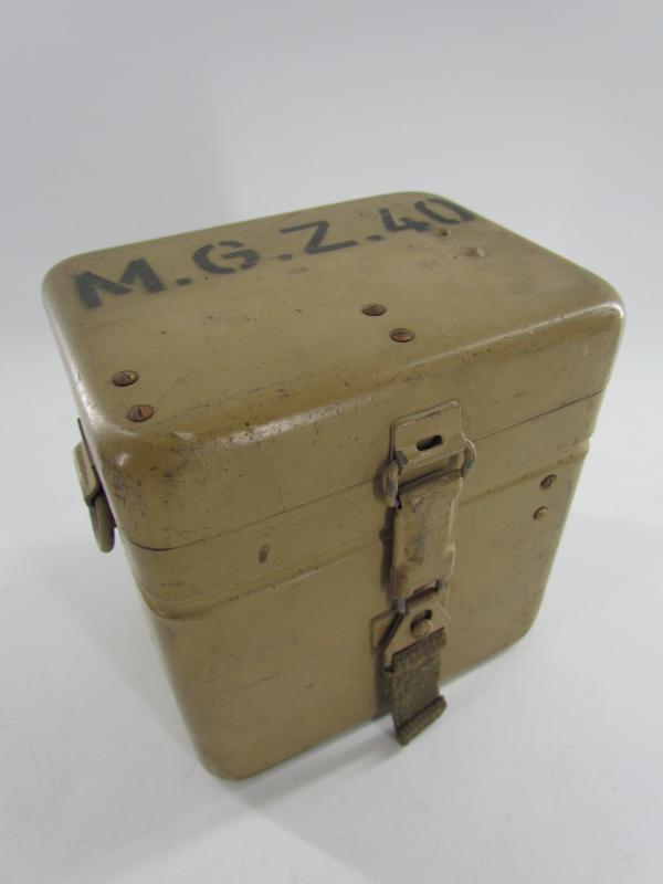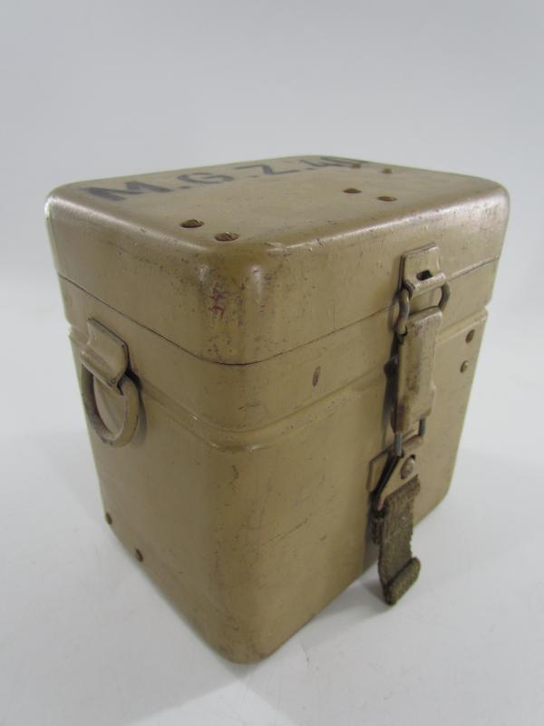 Scarce and sought after original tan painted optical MG42 carrier case marked hrv