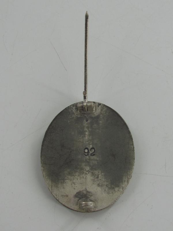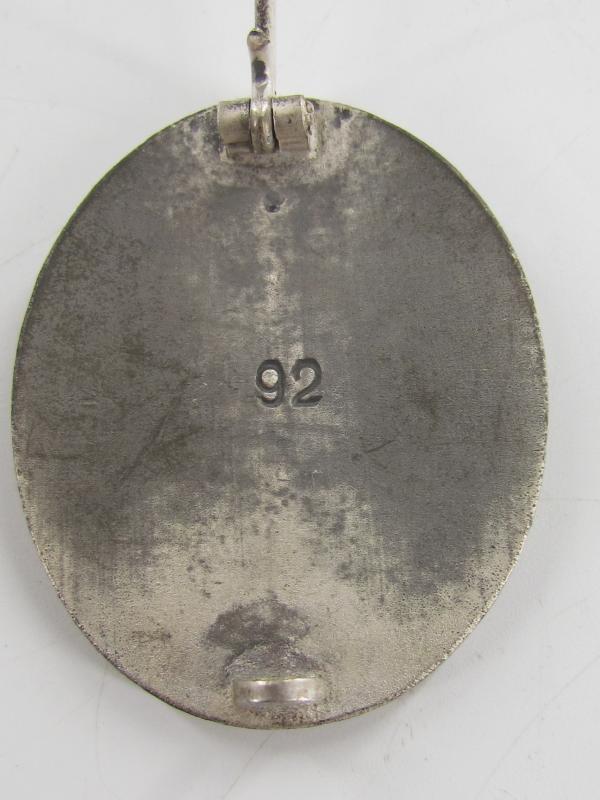 Wound Badge in Silver Manufacturer 92 ( Josef Rücker & son Gablonz "92" marked ) Wound badge silver made of zinc. in a very good condition