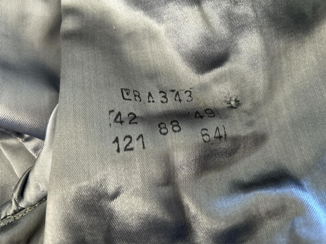 The greatcoat has its original shoulderboards in the rank of Luftwaffe Oberfeldwebel and has a nice size, maker, and year mark.