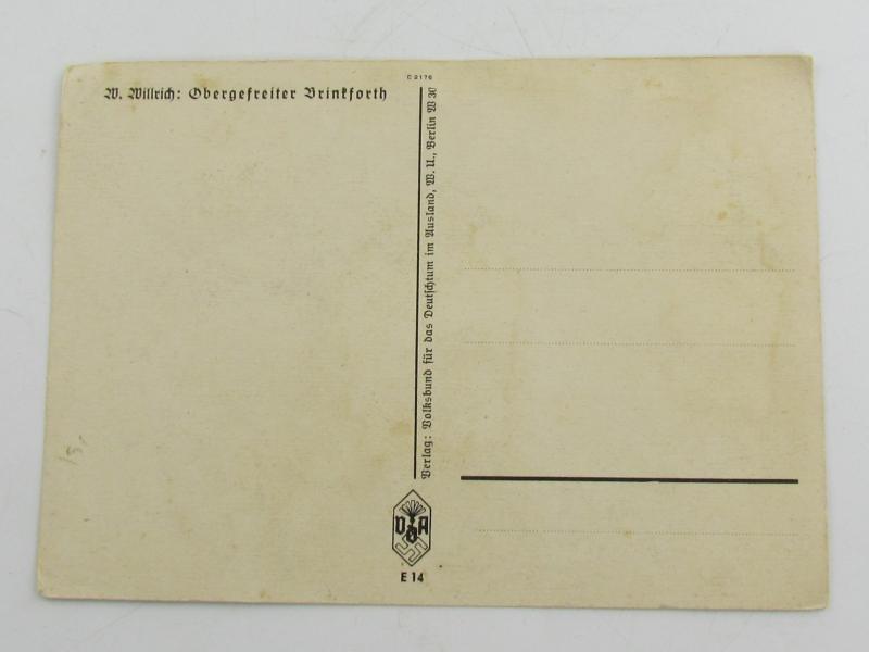 In a very good condition a German Wehrmacht (Heer) Postcard of Obergefreiter Brinkforth. The postcard is form the W.Willrich serie unissued condition