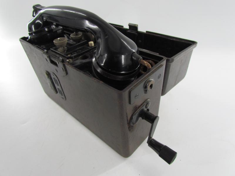 The Field Telephone is in complete condition, including battery compartment and the generator handle.