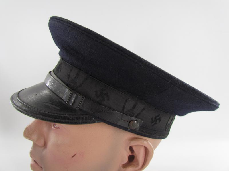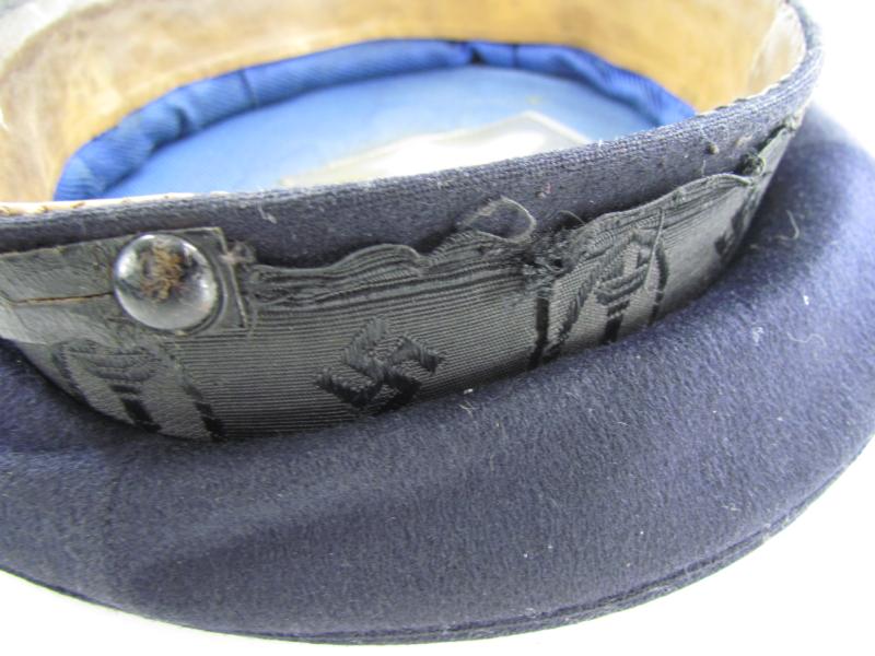 National Sozialistische Reichskriegerbund Kyffhäuserbund visor cap. In used condition and without insignia The black rayon center band is damaged on one side