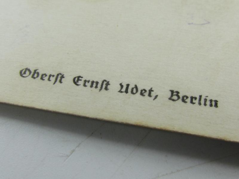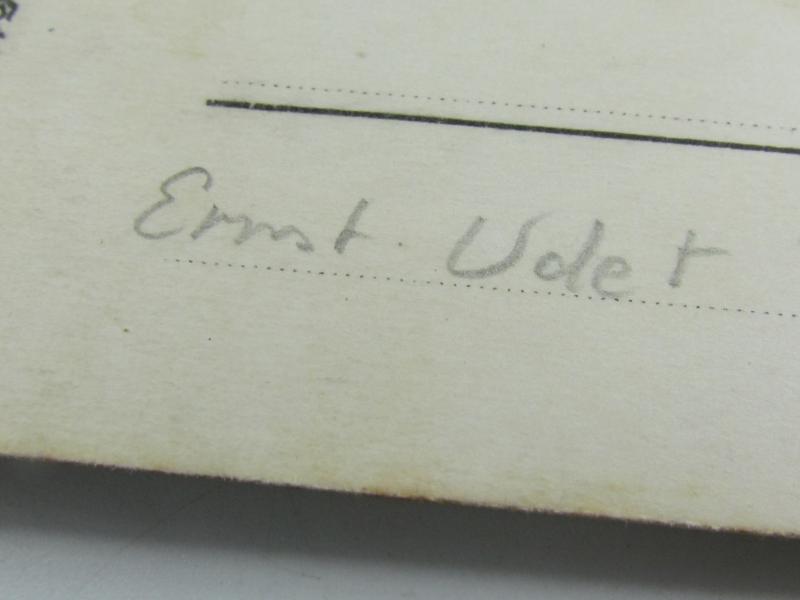 Original postcard from Ernst Udet . Ernst Udet (26 April 1896 – 17 November 1941) was a German pilot during World War I and a Luftwaffe Colonel-General (Generaloberst) during World War II. unissued condition