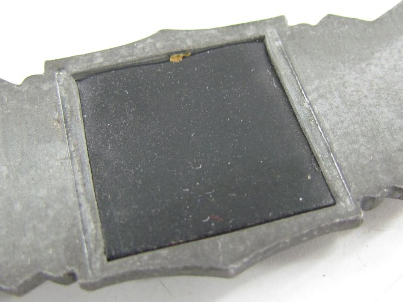 The clasp shows great detail, the clasp regrettably lost most of its original silver finish. The clasp is complete with its original magnetic backplate.