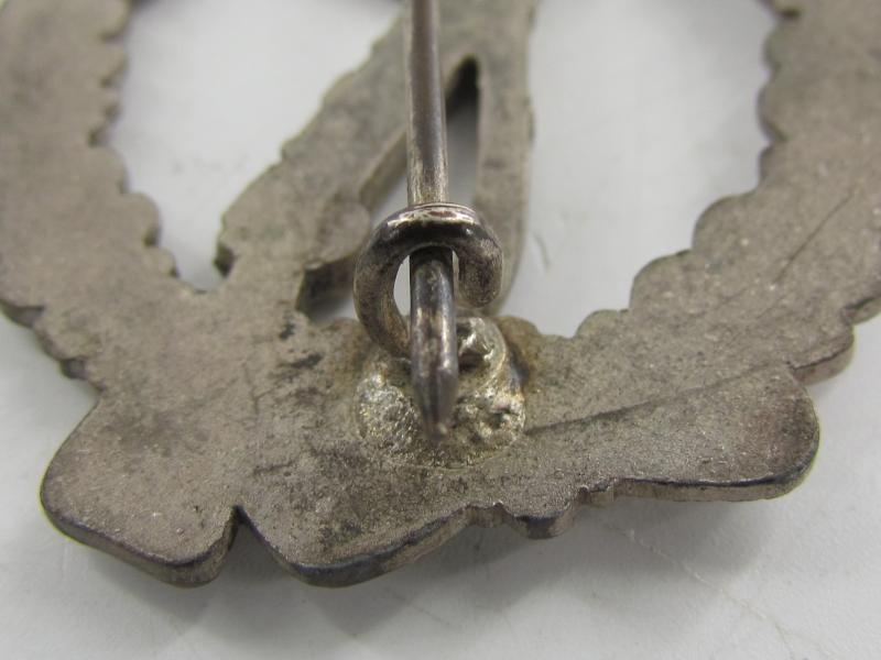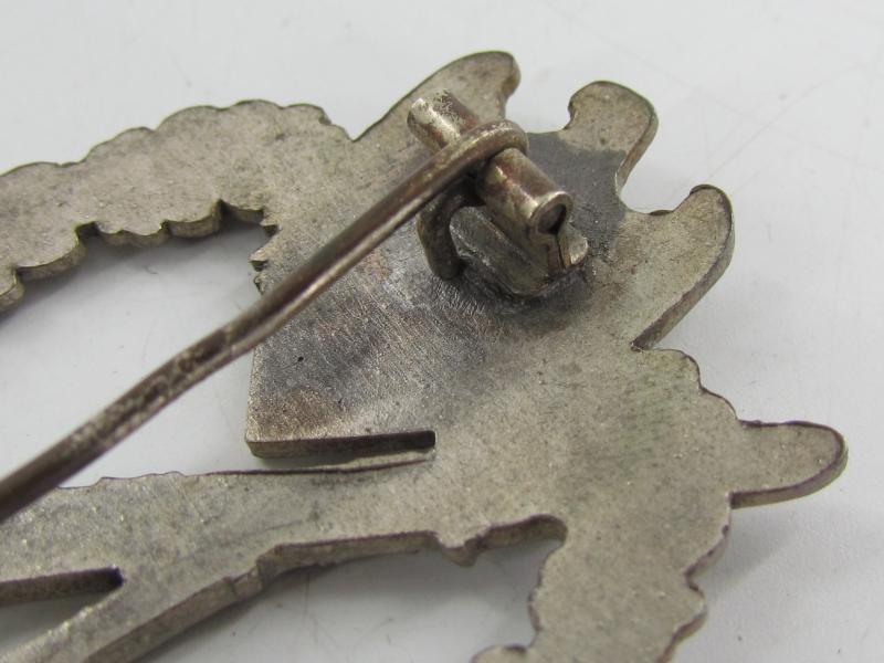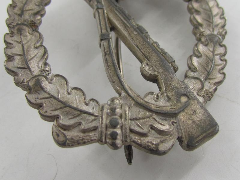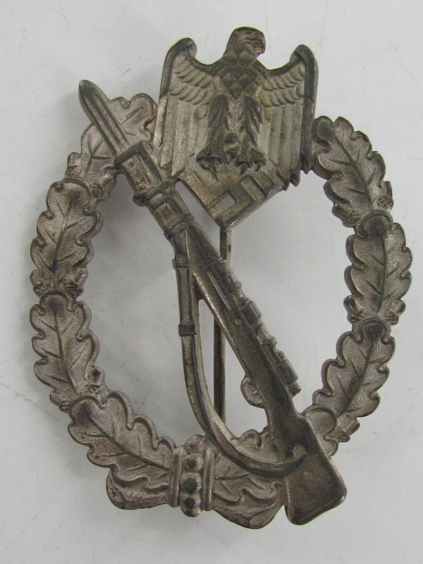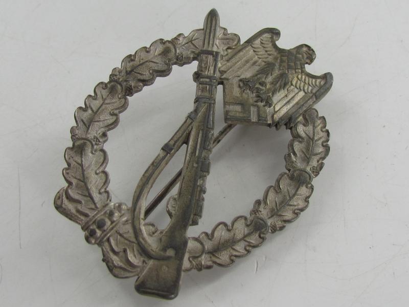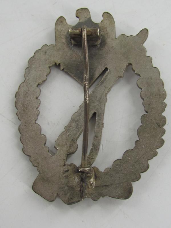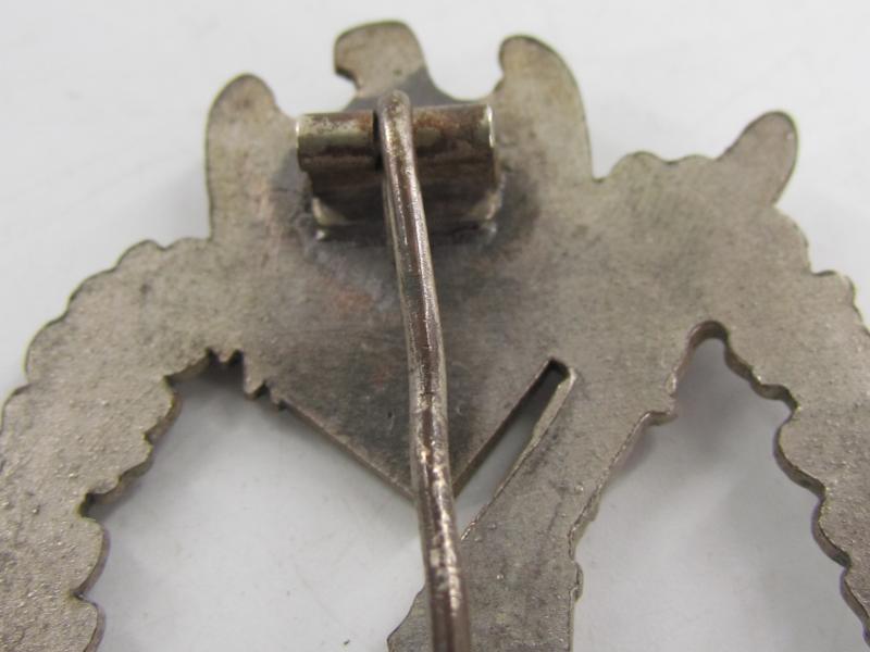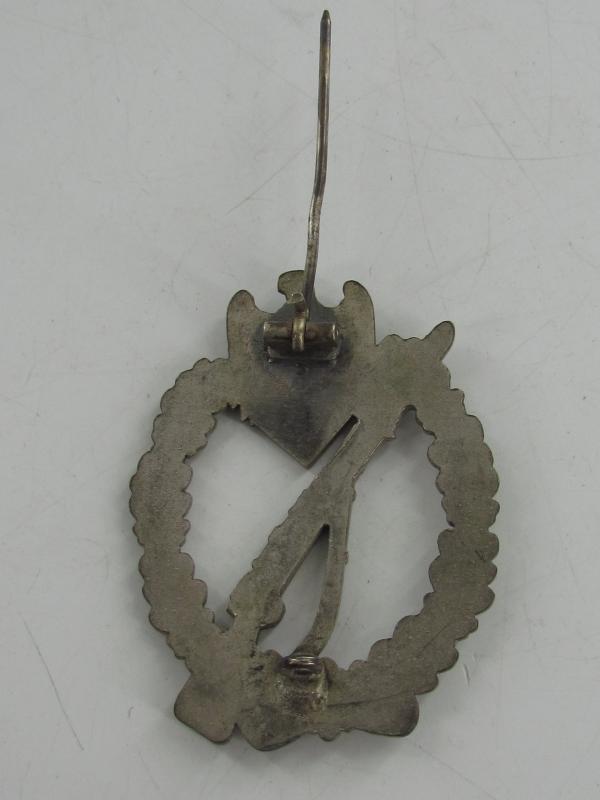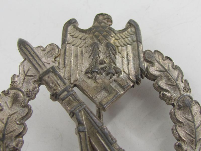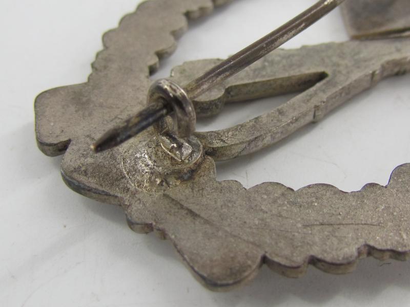 Infantry Assault Badge in Silver (Infanterie Sturmabzeichen in Silber) The badge is not visible maker marked most of its original silverish finish ist still remaining