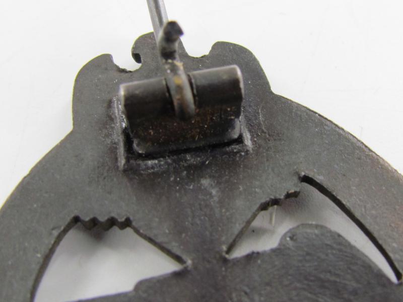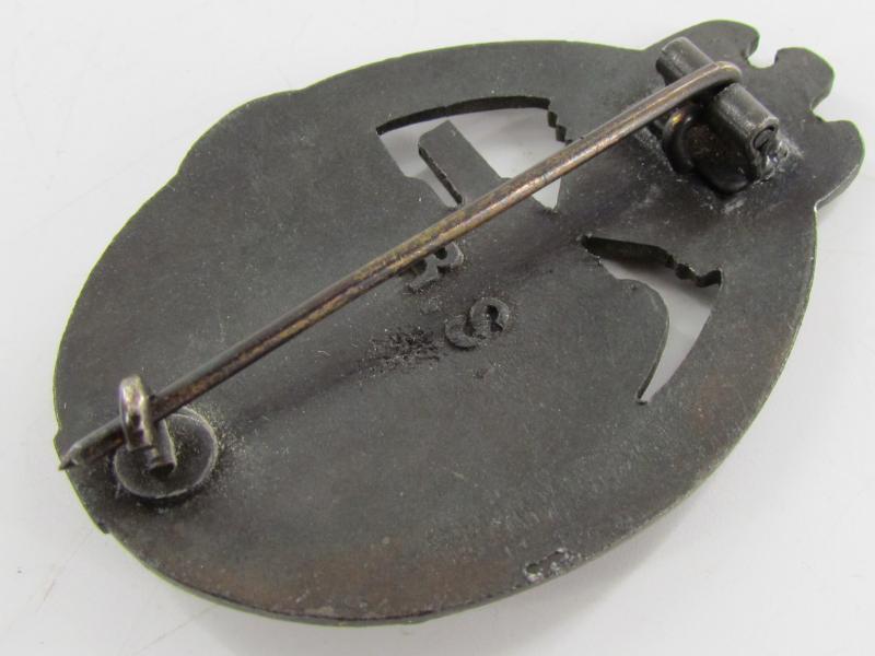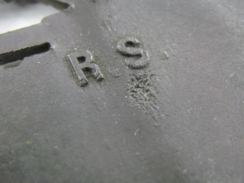 The badge is nicely maker marked with 'R.S.' indicating production by the company of 'Rudolf Souval' from Wien (Vienna), this is the variant with the broad maker mark (Variant 5.1.1. in the book of Philippe de Bock). This is the earliest variant Souval Panzer Assault Badge and very hard to find.